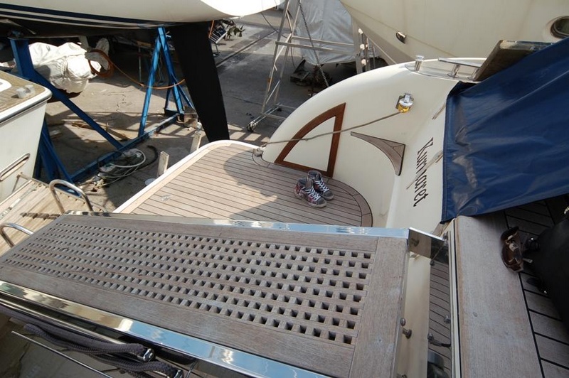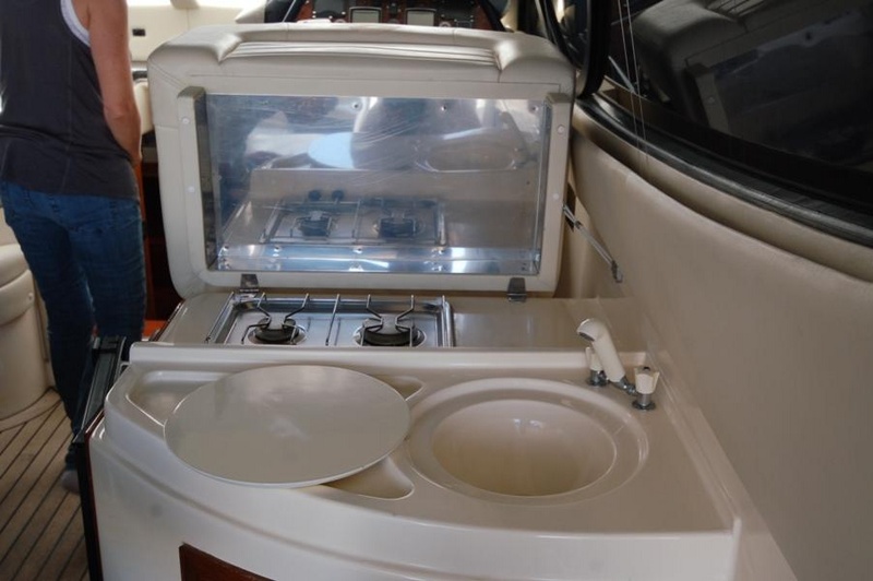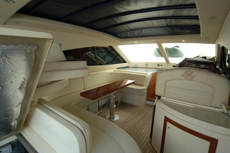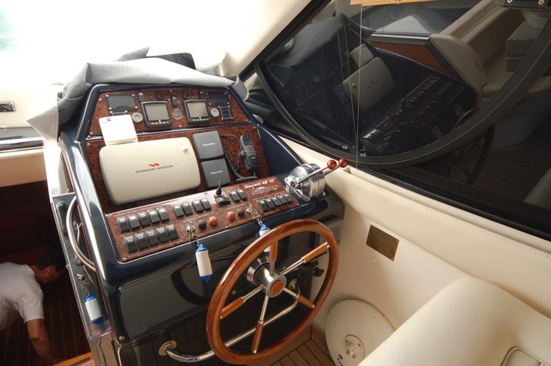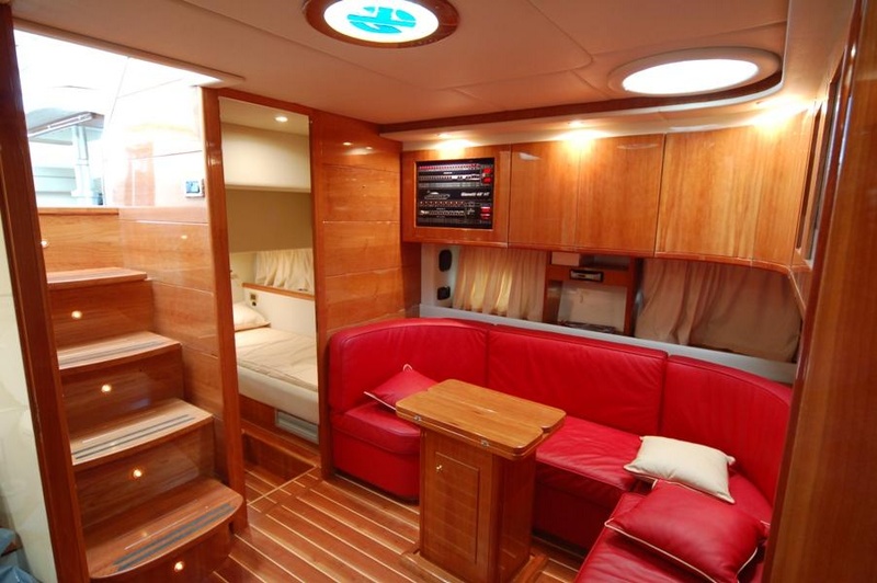En barco en inmaculado estado todo, como nuevo casco blanco con azul, cabina de teca y cubierta INTERIOR DELUXE con sofá de cuero, muebles de cerezo, PARQUET y mármol TOP solo 200 horas de bicicleta! |