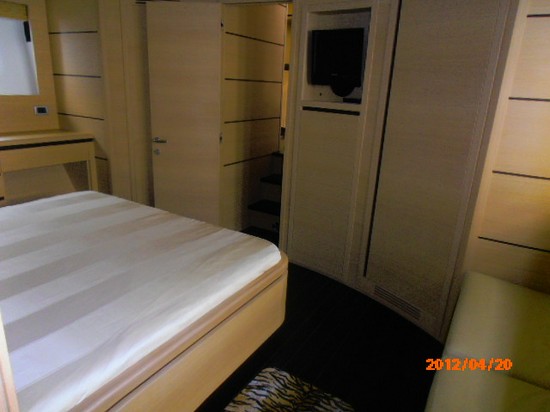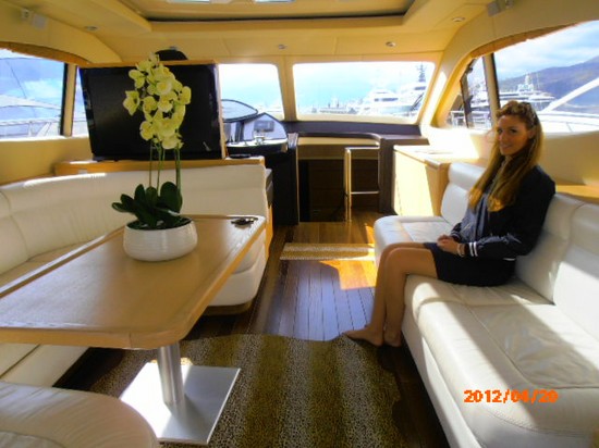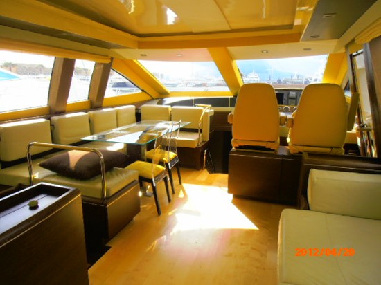 Notas internasinterior moderno, roble con estilo y muy hermosos pisos de madera tratada y la luz es de color marrón en.gran salón y luminosa sala con sofá-au a la cubierta superior de cuero blanco con mesa plegable y opuesta a la que hay otra otomana de tres plazas + sofá de tres piel.asiento del timón con la izquierda acciona eléctricamente gabinete con TV LCD 50 "Samsung con retráctil eléctrico y sistema de televisión por satélite con x de esquà y Dolby Surround de sonido Bose de alta fidelidad, el piso y los muebles es de tablones de roble.a través de una abertura grande con una escalera de tres pasos conduce a la cubierta inferior, donde se encuentra el comedor menos amplias de cuero sofá de 2 plazas de color beige en contraste con mesa plegable comedor de teca.a la izquierda está la cocina completa con nevera / congelador de 350 litros., Bañera de hidromasaje microondas, lavavajillas bosch y vitrocerámica, máquina de café espresso Lavazza x cocina Corian muebles de roble alto y gris con la horca armarios y estantes cajones.bar con televisión LCD de 20 "de pared.adelante grandes cabina VIP con cama doble de la isla, un armario, dos armarios de lado a lado con armarios y estantes, todos en el piso de roble claro y vengan y se postren a los extremos con un cuarto de baño con mármol, fregadero de cerámica d ' apoyo y una gran ducha.en medio del barco camarote principal, compuesto por cama de matrimonio, dos armarios empotrados, caja fuerte, armarios escritorio, cajones y 2 plazas en sofá de cuero color beige, vertical ventanas ojo de buey fijo en ambos lados (3 por lado), muebles de roble, y Amplio cuarto de baño con mármol, fregadero de cerámica y baño con jacuzzi separado cinco aviones con ventanas laterales.popa con acceso desde la cabina del piloto se encuentra la cabina de invitados con dos camas dobles, armarios, armarios y baño de ducha con lavabo y baño de hidromasaje de la máquina de lavado.que transmita la extrema con acceso desde la cubierta son la tripulación de cabina con cama individual baño y ducha.