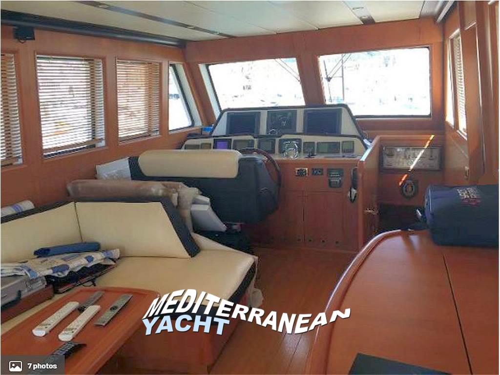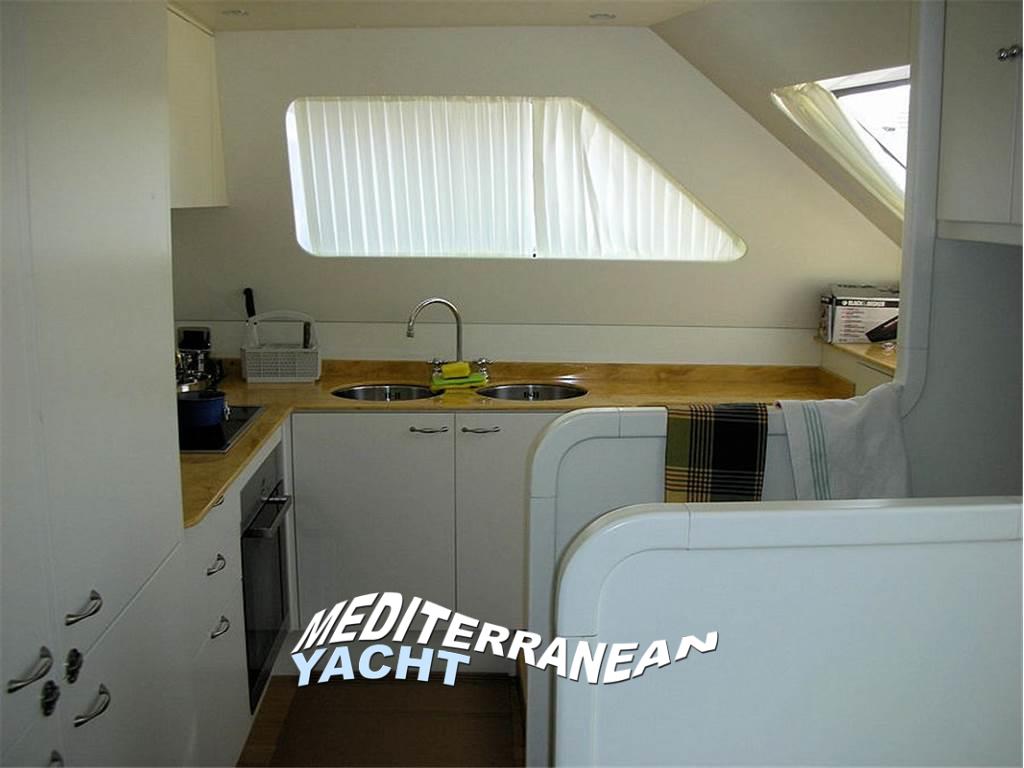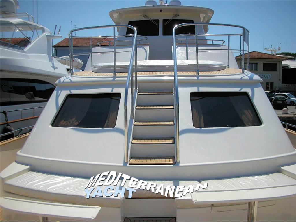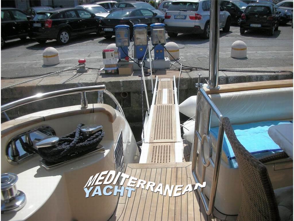Notas internasInterni: PONTE FLY BRIDGE: - Timoneria, dinette con divano, tavolo e mobile contenitore - Prendisole a poppa e prua. PONTE PRINCIPALE: - Pozzetto con divano, tavolo pranzo e sedie - Salone con divano, tavolino e due poltrone, divano contrapposto - Zona pranzo separata con divano a "L", tavolo, sedie e mobile/vetrina - Disimpegno con scala salita al fly, bagno di servizio, scala discesa al ponte inferiore e porta uscita laterale - Cucina in locale separato con piano cottura in vetroceramica, frigo/freezer Whirpool, forno elettrico Bosch, lavastoviglie Miele,doppio lavello inox, dinette equipaggio e scala discesa alle cabine equipaggio - Interni in teak, divani in pelle, pavimento in parquet. PONTE INFERIORE: - Cabina armatore a tutto baglio con letto matrimoniale, bagno con box doccia e cabina armadio - Due cabine doppie con letti in piano, ognuna con bagno e box doccia - Cabina vip a prua con letto matrimoniale e bagno con box doccia. EQUIPAGGIO: - Una cabina singola con bagno - una cabina doppia con bagno Notas de la instrumentación- Due monitor multifunzione Furuno da 16"- Computer di bordo - Radar - Autopilota Furuno - GPS/plotter - Ecosonda - VHF - Stazione del vento - Due monitor Caterpillar controllo motori - Interfonico interno Notas de armamento- Generatori Kohler, 2X27 Kw- Aria condizionata doppio ciclo - Dissalatore 250 lt/h - Elica di manovra a prua - Elica di manovra a poppa - Comandi elettronici - Stabilizzatori "Zero Speed" Rodriguez - Passerella idraulica a scomparsa Besenzoni - Teder Zodiac 3,85 con idrogetto - Due verricelli salpancora con campane di tonneggio - Verricelli di tonneggio a poppa - Terza stazione di manovra - Impinto acque nere - Impianto TV circuito chiuso con telecamere in sala macchine, pozzetto e passavanti laterali - Antenna TV satellitare SeaTel - TV LCD in salone, zona pranzo e in tutte le cabine - Due cantinette vini refrigerate in zona pranzo - Fabbricatore ghiaccio - Lavasciugatrice Miele |