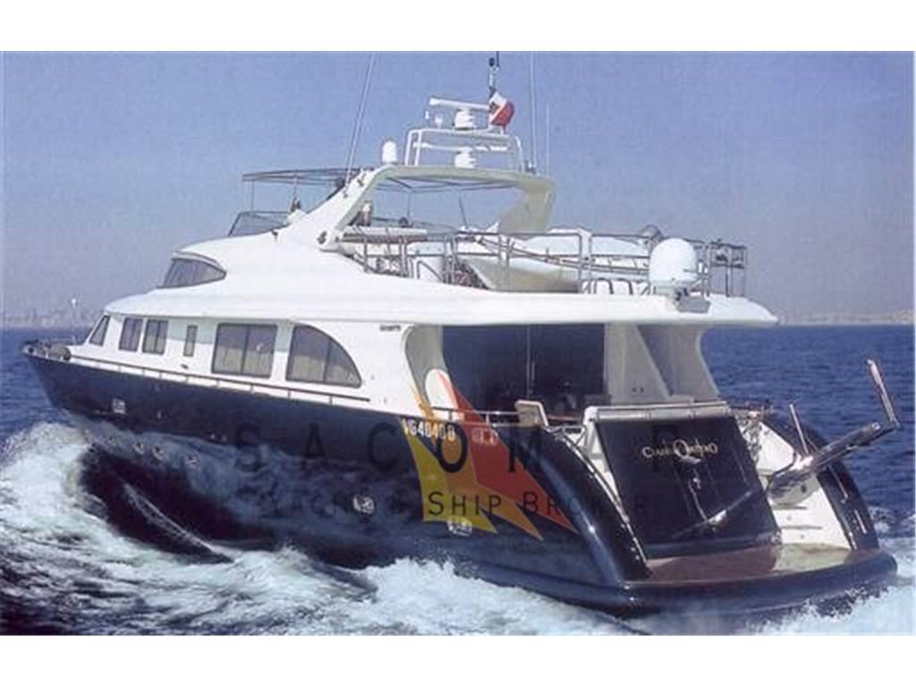 Notas internasNotas de la instrumentación2 Joystick, 2 Pilota automatico, 2 Radio VHF, 2 Winch tonneggio di poppa, 3 Radar, Allarme motore, Angolo barra, Autoclave, Autogonfiabile, Batterie, Bussola, Contamiglia, Doccia esterna, Doppia timoneria, Ecoscandaglio, Elica di prua - bow thruster, GPS, Gruette per tender su fly (portata 680kg), Passerella (IDRAULICA), Piattaforma, Plotter, Pompa di sentina automatica, Pompa di sentina manuale, Raddrizzatore, Rollbar, Salpa Ancore Elettrico, Scaletta da bagno (idraulica), Stabilizzatori (Rodriguez)Notas de armamento4 TV, 5 Decoder satellite, 5 DVD, 7 Stereo, Altoparlanti, Antenna Satellitare TV, Aria condizionata, BBQ/ Grill, Boiler, Cassaforte, Clima reversibile, Cucina, Cuscineria di prua, Cuscineria fly, Dissalatore, Forno, Frigorifero esterno, Frigorifero interno, Giubbetti di salvataggio, ICE Maker, Impianto acque nere, Inverter, Lavasciuga, Lavastoviglie, Microonde, Piastra in vetroceramica, Prese interne 12v, Prese interne 220v |