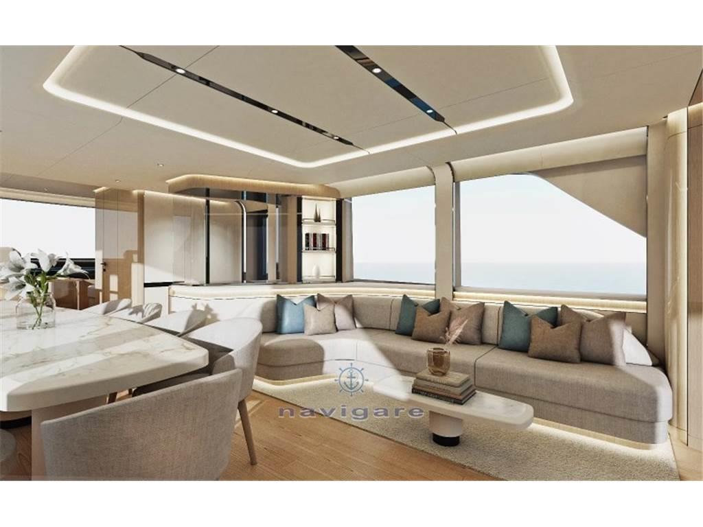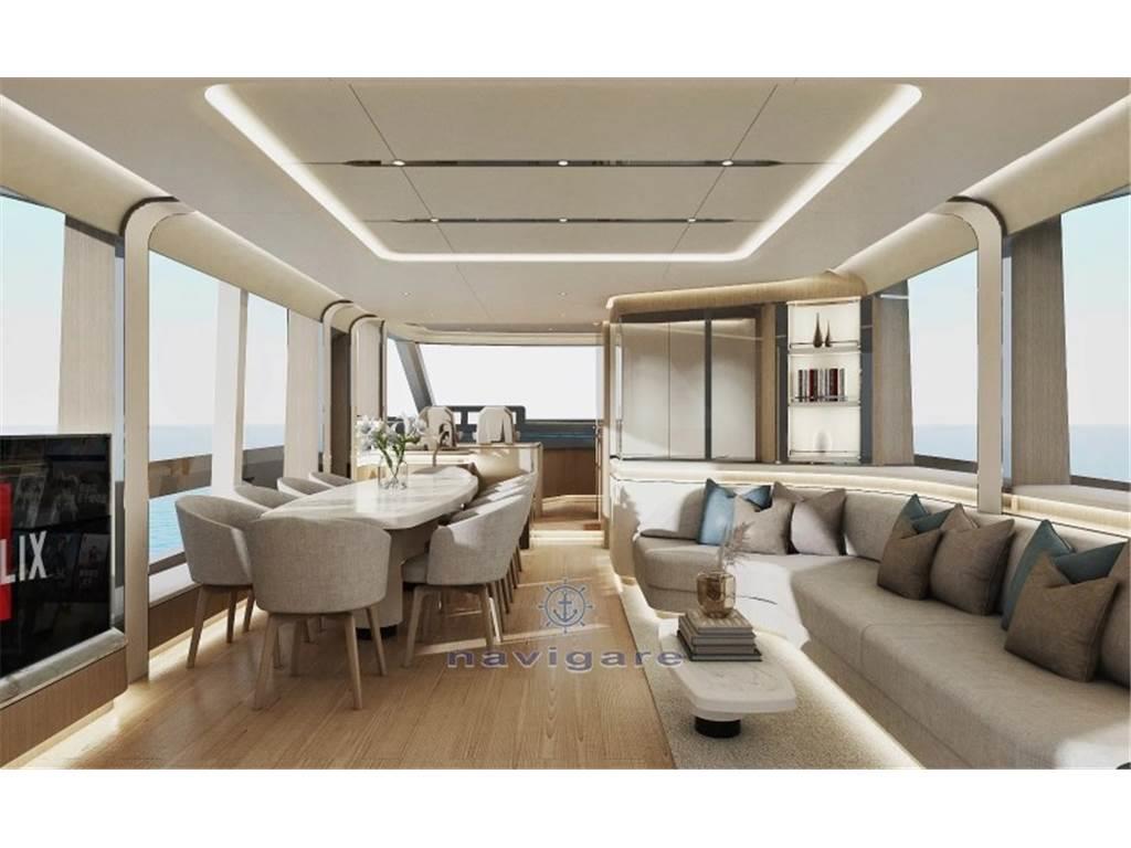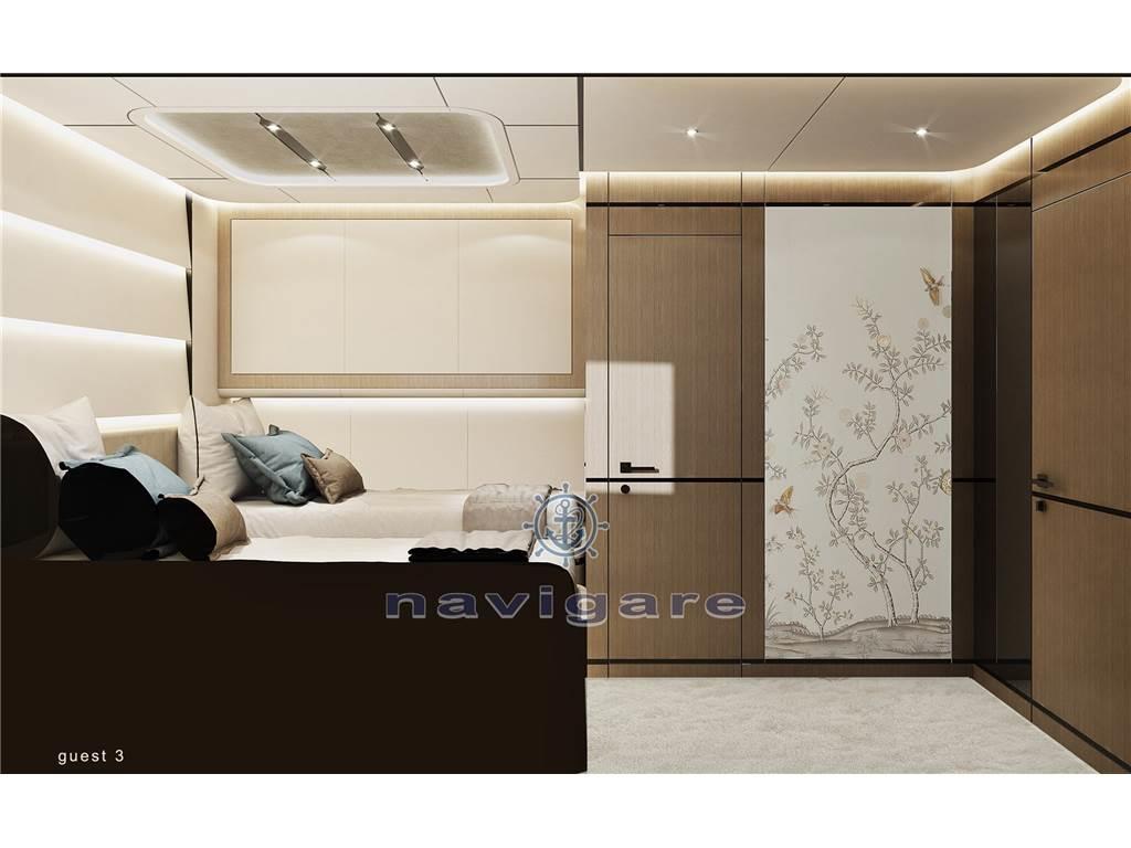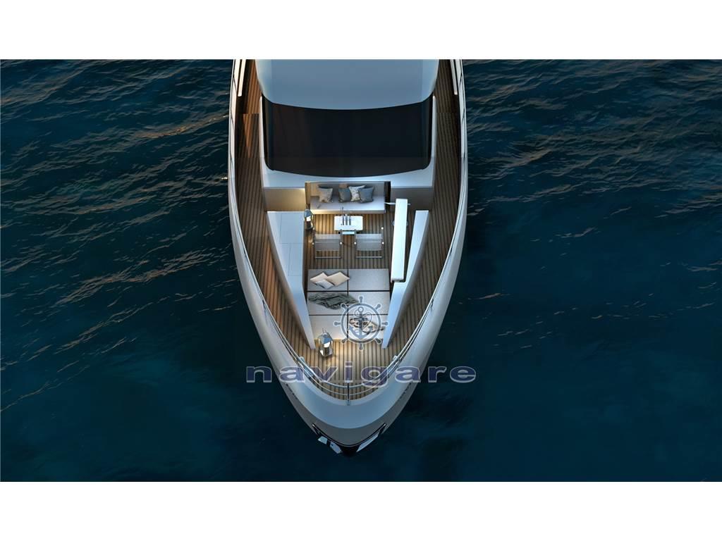 Notas internasNotas de la instrumentaciónAIS (SIMRAD), Allarme fumo/gas, Allarme motore, Allarme sentina, Ancora, Antenna radar, Autoclave, Batterie, Bussola, Caricabatterie, Comando motori elettronico, Computer di bordo, Contamiglia (SIMRAD), Doccia esterna, Ecoscandaglio (SIMRAD), Elica di poppa - stern thruster, Elica di prua - bow thruster, Fari fissi a poppa, Faro orientabile, Flap idraulici, GPS (SIMRAD), Impianto antincendio, Indicatori Flaps, Lavaggio catena, Luci di cortesia, Luci subacquee, Passerella, Pilota automatico, Plotter con antenna GPS (SIMRAD), Porta ingresso, Porta laterale, Radar (SIMRAD), Radio VHF (SIMRAD), Salpa Ancore Idraulico, Winch tonneggio di poppaNotas de armamentoAltoparlanti, Aria condizionata, BBQ/ Grill, Congelatore (Miele), Cucina (Miele), Cuscineria completa, Forno (Miele), Frigorifero interno (Miele), Ghiacciaia (Miele), Impianto TV, Lavastoviglie (Miele), Lavatrice (Miele), Microonde, Piastra elettrica, Prese interne 220v, Radio AM/FM, Stereo, TV, WC marino elettrico, In the fly bridge will be installed:N° 1 Simrad Multifunction display, NSO evo3S, 16”, N° 1 Simrad Tridata, IS42 INSTRUMENT, Engine monitoring panels, Analogue port and starboard engine RPM gauges, Main engines control levers and push buttoms, Search light control panel, Intruder control panel with position indicator, Bow thruster control panel, Horn control. |