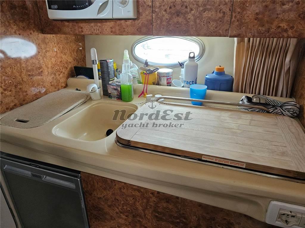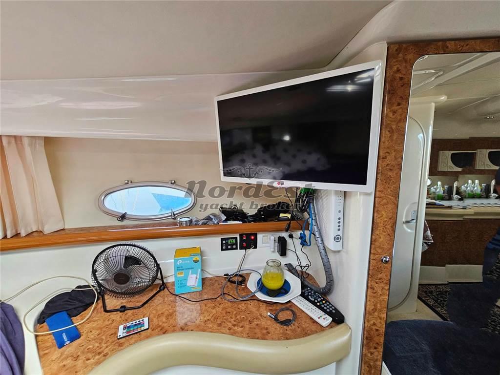 Notas internasAria condizionata: Dometic 2025 Mobile bar Antenna TV satellitare Impianto stereo Impianto TV Tv Bagni: 1 Cabine: 2 Posti letto: 4 Cucina Forno: Presente Frigorifero Notas de la instrumentaciónPilota automatico: Raymarine Ecoscandaglio: Raymarine eS127 GPS: Raymarine eS127 Plancetta: in teak Vhf: Presente Notas de armamentoImpianto antincendio Copertura pozzetto Cuscineria prendisole Doccia esterna Elica di manovra a prua: Presente Flaps Frigorifero esterno Luci di cortesia Zattera di salvatagio |