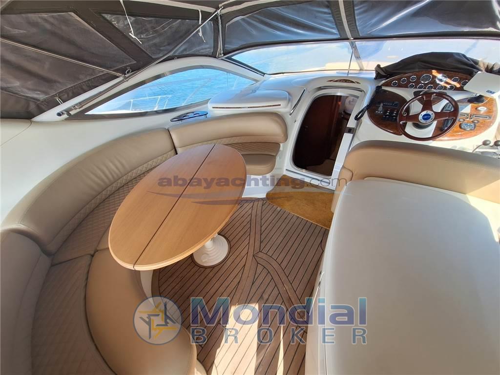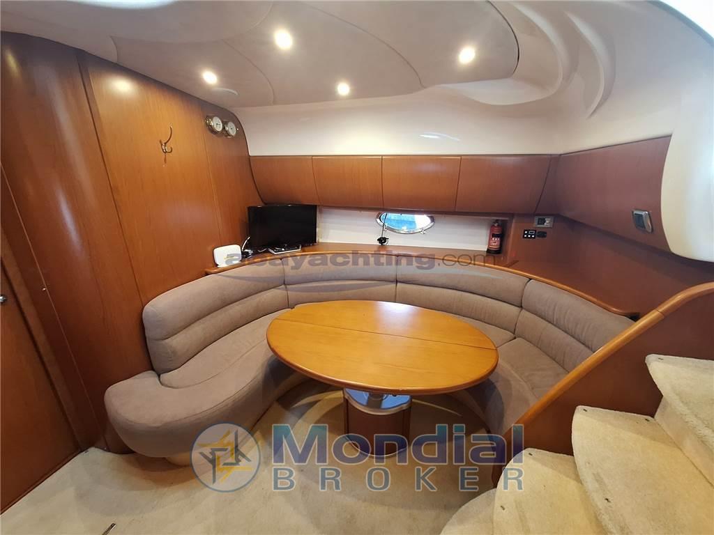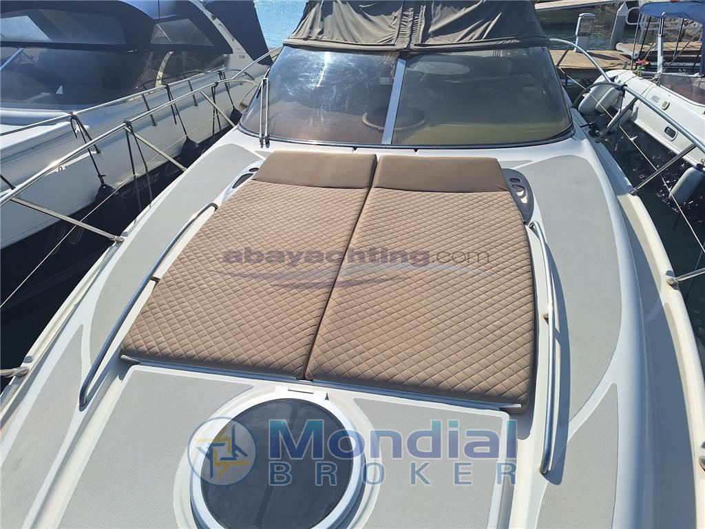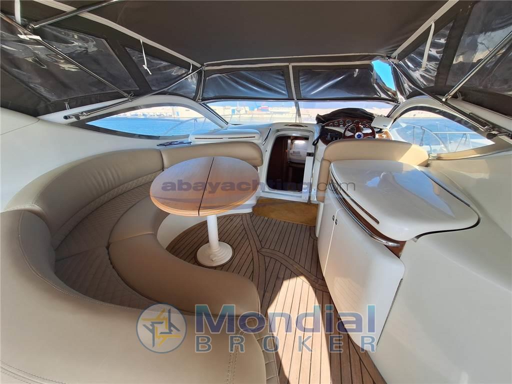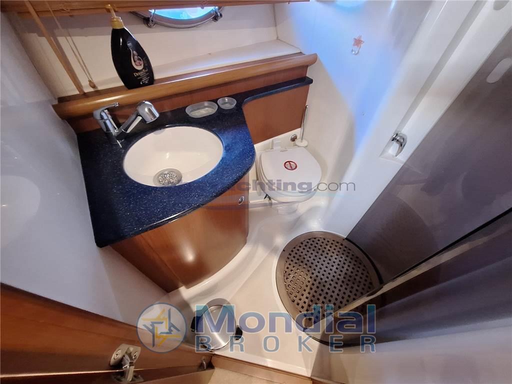 Notas internasNotas de la instrumentaciónBussola, Radio VHF (Icom).Notas de armamentoAllestimento tecnico e di coperta:Ancora (+ catena 50 metri), Doccia esterna, Elica di prua - bow thruster (Side Power), Flap elettrici, Garage per tender, Luci subacquee, Passerella (Idraulica), Pompa di sentina elettrica, Pompa di sentina manuale, Porta ingresso, Pozzetto Teak (Originale), Presa 220V banchina, Salpa Ancore Elettrico, Scaletta da bagno, Tavolo pozzetto. Dotazioni domestiche di bordo: Aria condizionata (Hot/Cold), Impianto acque nere, Prese interne 12v, Prese interne 220v, 2 WC marino elettrico. Intrattenimento: Altoparlanti (interni ed esterni), Stereo, TV. Cucina ed elettrodomestici: Cucina, Frigorifero esterno, Frigorifero interno, Microonde, Piastra elettrica. Tappezzerie: Cappottina, Copripozzetto, Cuscineria di poppa, Cuscineria di prua, Cuscineria Pozzetto, Teli chiusura T-Top. |