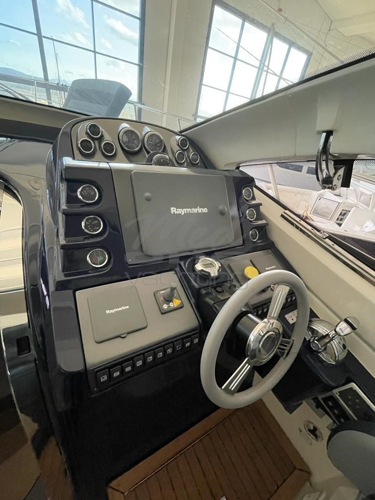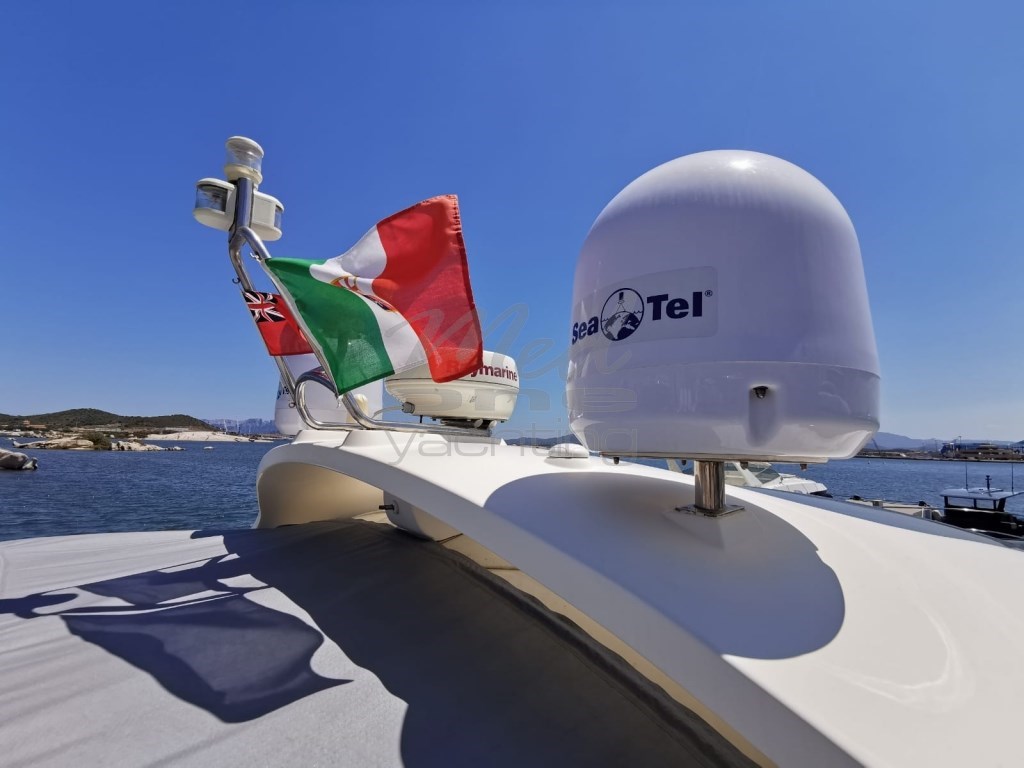 Notas internasNotas de la instrumentaciónAngolo barra, Antenna radar, Bussola, Comando motori elettronico, Contamiglia, Display, Ecoscandaglio, GPS, Pilota automatico, Plotter, Radio VHF.Notas de armamentoAllestimento tecnico e di coperta:Allarme sentina, Ancora, Autogonfiabile, Doccia esterna, Doppia timoneria, Faro orientabile, Flap idraulici (N°2), Hard top, Impianto antincendio, Passerella (IDRAULICA), Piattaforma, Pompa di sentina automatica, Pompa di sentina manuale, Raddrizzatore, Rollbar, Salpa Ancore Elettrico, Scaletta da bagno, Winch tonneggio di poppa. Dotazioni domestiche di bordo: WC marino elettrico. Dotazioni di sicurezza: Dotazioni di sicurezza oltre 50 miglia, Giubbetti di salvataggio. Intrattenimento: DVD, Impianto TV, Stereo, TV. Cucina ed elettrodomestici: Cucina, Frigorifero esterno, Frigorifero interno, Microonde, Piastra in vetroceramica. Tappezzerie: Cuscineria di poppa, Cuscineria di prua, Tendalino. |