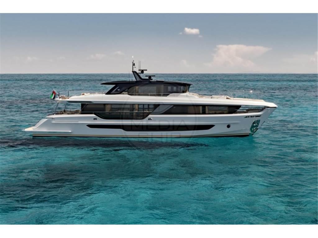 MAJESTY 100 TERRACE, SCAFO BIANCO, COPERTA IN TEAK, ELICA DI PRUA, 5 CABINAE, 7 BAGNI, 5 BOX DOCCIA, CUCINA SEPARATA, GENERATORE, 2° GENERATORE, GPS I |
