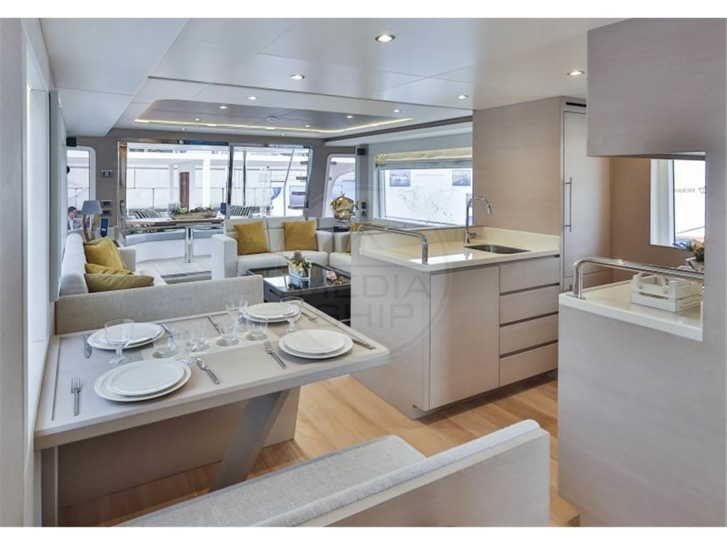 Notas internasNotas de la instrumentaciónBussola, Ecoscandaglio, Pilota automatico, Radio VHF.Notas de armamentoAllestimento tecnico e di coperta:Elica di prua - bow thruster, Piattaforma (Hydraulic), Winch. Cucina ed elettrodomestici: Congelatore, Frigorifero interno (Electric). |