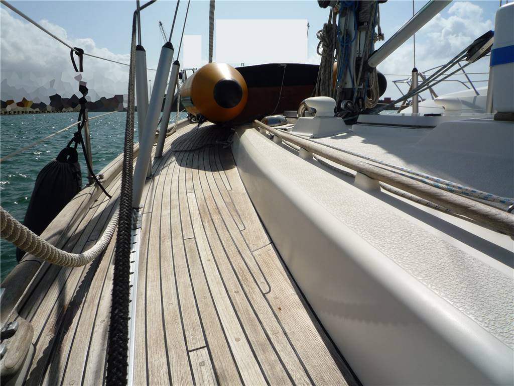 Teak deck rebuilt again in 2013 - Cockpit with teak seats - Fully battened mainsail - furling genoa with furling jib INOX - Outdoor Shower + mixed Boiler new 2008 - winches selftail steel - safety equipment complete Italian legislation - Engine PERKINS - Webasto heating - windsocks, even DELTA anchor winch with remote control and Lhofrans with 70 meters of chain-driven bow and back to the cockpit - battery charger and electrical system - Steering wheel + bar - Autopilot, tridata, wind, VHF, STEREO RADIO CD - Lazy jacks, canopy, steering wheel cover, life jacket and stern winches .. all in khaki colored canvas redone in 2010 - Sails: spinnaker, Genoa - indoor and outdoor cushions in excellent codizioni - Bathroom manual - even respect - Radio cD stereo with speakers in cockpit - tender + fb -