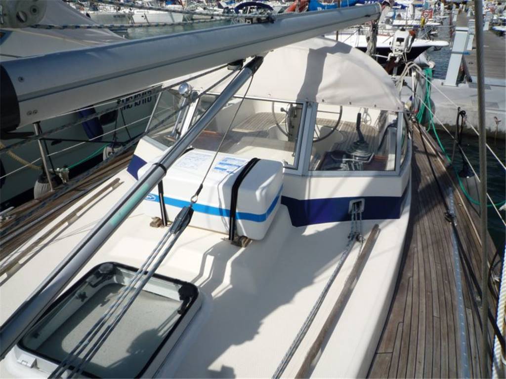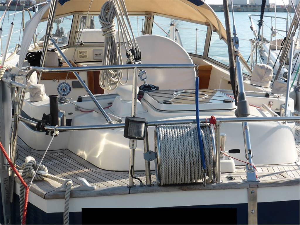 Notas de armamentoPonte in teak rifatto 2013 - Pozzetto con sedute in teak - Randa steccata - Genoa avvolgibile con rolla fiocco INOX - Doccia esterna miscelata + Boiler nuovo 2008 - winches self tail in acciaio - dotazioni di sicurezza complete normativa italiana - Motore PERKINS - riscaldamento WEBASTO - maniche a vento , ancora DELTA con salpancora Lhofrans con telecomando e 70 mt di catena con comando a prua e con rinvio in pozzetto - carica batterie e impianto elettrico - Timone a ruota + barra - Autopilota , tridata , stazione vento , vhf , RADIO STEREO CD - Lazy jack , spray hood ,copriruota timone , salvagente poppa e winches .. tutto in tela color caki rifatti nel 2010 - Vele : Gennaker , Genoa - Cuscinerie interne ed esterne in ottime condizioni - Bagno manuale - ancora di rispetto - Radio stereo cd con altoparlanti in pozzetto - tender + fb -
