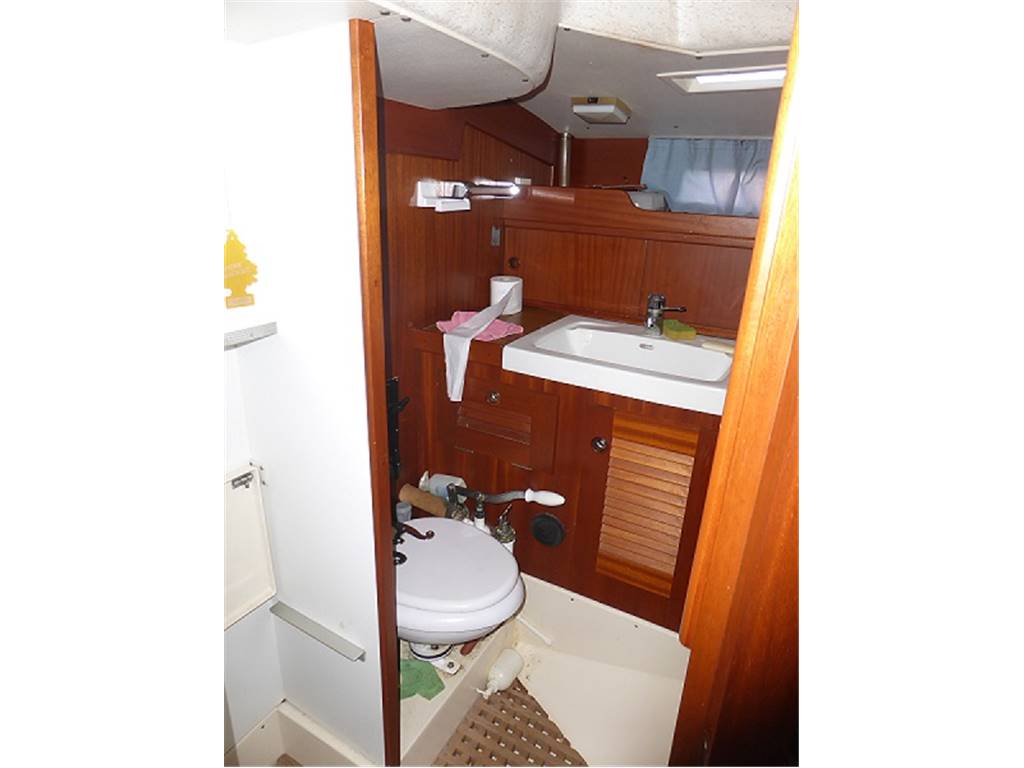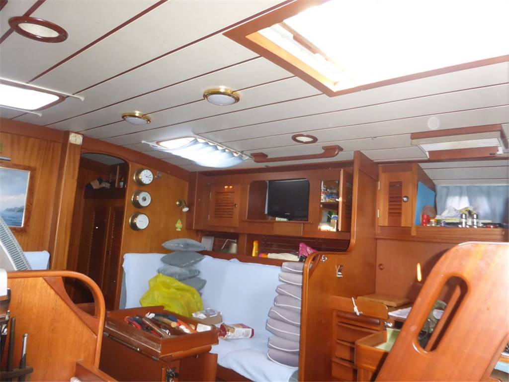 Notas internasAmpia dinette con un divano ad elle e contrapposto un' altro tutti in velluto beige trasformabili ognuno in letto singolo + schienale ribaltabile a pullman per altro letto sibgolo , tavolo in teak apribile , pensili , cassetti e impianto radio cd - A Prua cabina ospiti con letto sdoppiato trasformabile in matrimoniale e bagno privato con doccia - a dritta nella dinette cucina ad elle completa con cucina 4 fuochi con forno basculante ,ampio frigorifero a pozzetto, lavello con doppia vasca in inox, pompa x acqua di mare - a sx in dinette il tavolo da carteggio con la seduta in velluto e tutta la strumentazione completa: plotter , radar, vhf - A poppa tramite un corridoio dalla zona carteggio si accede alla ampia cabina Armatoriale con grande con letto matrimoniale e divano con doppia seduta in tessuto blu + grande bagno privato con box doccia - Sotto la scala si trova il vano motore con comodo accesso laterale per ispezioni ed interventi.