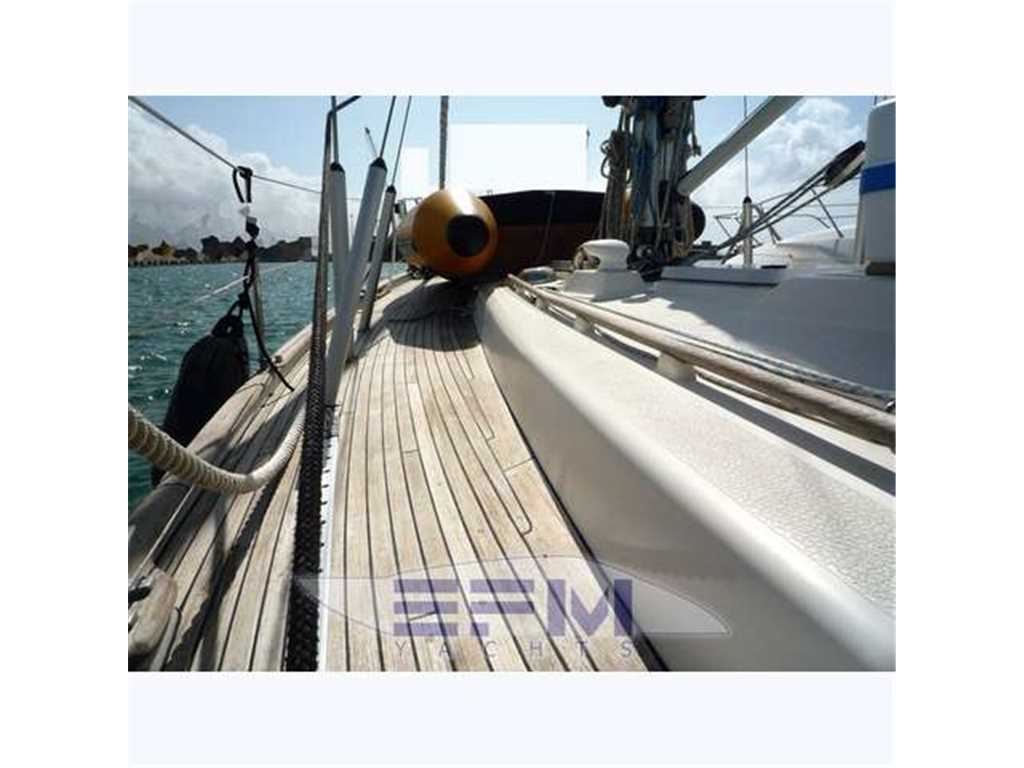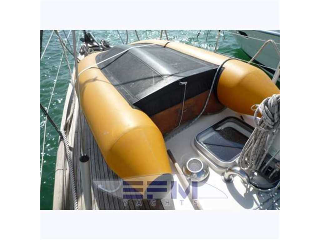 Teak deck rebuilt again in 2013 - Cockpit with teak seats - Fully battened mainsail - furling genoa with furling jib INOX - Outdoor Shower + mixed Boiler new 2008 - winches selftail steel - safety equipment complete Italian legislation - Engine PERKINS - Webasto heating - windsocks, even DELTA anchor winch with remote control and Lhofrans with 70 meters of chain-driven bow and back to the cockpit - battery charger and electrical system - Steering wheel + bar - Autopilot, tridata, wind, VHF, STEREO RADIO CD - Lazy jacks, canopy, steering wheel cover, life jacket and stern winches .. all in khaki colored canvas redone in 2010 - Sails: spinnaker, Genoa - indoor and outdoor cushions in excellent codizioni - Bathroom manual - even respect - Radio cD stereo with speakers in cockpit - tender + fb -