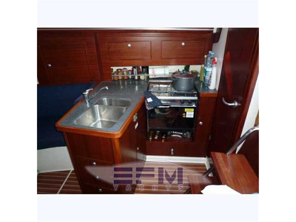 Notas internasHanse 315 - boat test: It was one of those days when the sun shone but the wind did not blow. A shame really because one of the chief qualities of this boat is her reputation for being a fast sailing, 31-footer. Lack of wind meant that our opportunity to put this aspect to the test was severely curtailed. We shall begin by talking about the boats self tackingjib. This is one of the many reasons why this boat would not only be good for more experienced sailors, but also perfect for beginners and those who enjoy single handed sailing. Instead of having to pull at ropes every time you want to tack or jibe, it does it automatically for you and in doing so, provides excellent visibility. Unfortunately it did cause a few problems. As motor boats zoomed across the water, creating a multitude of bow waves and with very little wind, the movement cause the jib to swing from one side to the other with an almighty bang. Though this is a small price to pay compared to its other advantages. One of her other notable features is the remarkable amount of boat you get for your money. But what makes her really good value is the standard spec which includes many items sold as extras on competitive craft. We don't have space to list them all here but visit the direct competitor's websites the Jeanneau 32, the Legend 32 and the Bavaria 33. You can make the comparisons yourselves. She is CE classified A (Ocean). If you are willing to spend a little more, however, there is a wide range of extras available from electronics and navigational equipment, to deck hardware and interior decor. The 315 we tested had a wheel rather than a tiller which comes as standard. The steering is very light and only the tiniest movement is needed to spin the boat round. While we motored out of the harbour, the steering was also very responsive, though I fear this wasn't the case while sailing, purely d wn to lack of wind. The Hanse is built in what was East Germany in their boatbuilding yard Hanse Yachtzentrum on the Ryck River just a few miles from the Baltic Sea. Before Michael Schmidt came along to buy the premises, the yard mostly built commercial craft plus a few yachts. Schmidt is a well known name as an Admiral's Cupwinning yachtsman and as yacht broker on the Hamble. His experience as a racer has made him resolve to build boats which are not only fast but can be sailed by a family crew. This is a production boat built to a price, but nevertheless the design cleverly provides a lot of boat for the money. Although contained in a hull designed for speed the accommodation is adequate but not lavish. The finish inside is impressive with off-white bulkheads, vinyl-covered headlining and a generous provision of red-stained varnished mahogany. We were told that the automated varnishing system applies sixteen coats, resulting in a tough and beautiful finish that I would not want to emulate by hand. In my book the 'Reeds Yacht Buyers Guide' I described the interior as follows: The forward cabin is separated from the saloon by a door. Inside the cabin is a large double berth (2m) long, this can be converted to a single with a chair. There is a locker in additinon to shelves above the berths. I found a few changes since my last look. The lockers no longer have rattan fronts; these have been changed to solid doors with very smart locks. (See pics) The saloon has two straight settees separated with a folding table. The galley is an L shaped island supplied with a gas cooker with two burners and an oven. The insulated coolbox with a cooling unit is also standard. One of the really unusual features is the provision of an exceptionally large sail locker entered by a door from inside the heads. The aft cabin has a large double berth with the headroom etermined by the cockpit under which it sits. There is a forward facing chart table with its own seat. The switch panel is hinged and reveals a very tidy wiring loom. Engine access is easy. There are five opening portlights and four opening hatches. Under bunk lockers are limited by the water tank to starboard and the batteries to port. The overall interior impression is smart and modern. Comfort is provided without the luxury of a more expensive boat. Experienced buyers do a lot of research before they arrange a test sail. I suspect that many will be convinced when they try her, especially if their day includes some wind. Hanse are building 400 boats a year this is a testimony to the quality and design of their range. If boats can be thought of as cars, the nearest analogy would be to class the 315 as a Volkswagen, this is not derogatory. She is very much the product of German efficiency and careful planning, if you want value for money she is well worth a test sail of your own. Notas de la instrumentaciónHanse 315 - nominated for European Boat of the Year 2007. We have made good yse of our 9m hull to make the Hanse 315 an exceptional boat. The 315 is a typical example of evolution instead of revolution.We listened to our owners and designed a beautiful exterior for a 9m yachts and built it with several additional new ideas insideHanse 315 - boat test: It was one of those days when the sun shone but the wind did not blow. A shame really because one of the chief qualities of this boat is her reputation for being a fast sailing, 31-footer. Lack of wind meant that our opportunity to put this aspect to the test was severely curtailed. We shall begin by talking about the boats self tackingjib. This is one of the many reasons why this boat would not only be good for more experienced sailors, but also perfect for beginners and those who enjoy single handed sailing. Instead of having to pull at ropes every time you want to tack or jibe, it does it automatically for you and in doing so, provides excellent visibility. Unfortunately it did cause a few problems. As motor boats zoomed across the water, creating a multitude of bow waves and with very little wind, the movement cause the jib to 