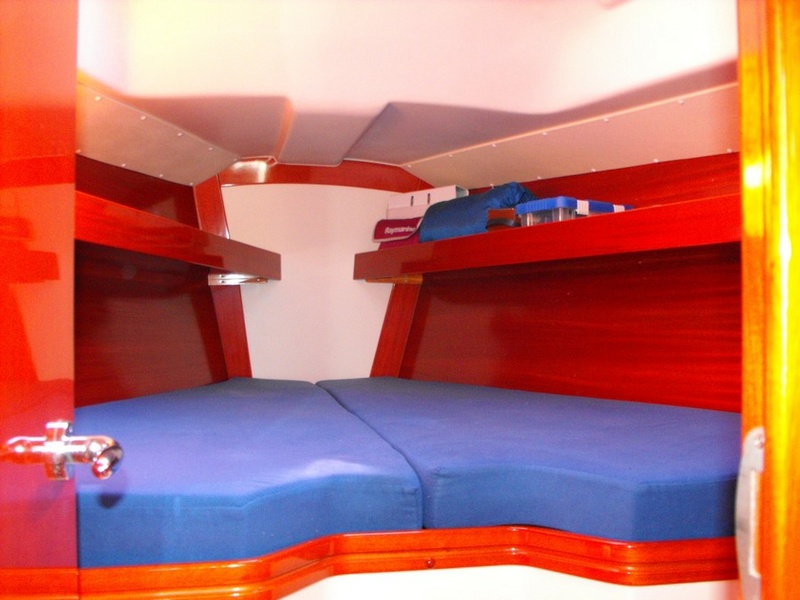Notas internasUna litera en la Plaza; Un cuarto de baño; Gran lateral + armario dos taquillas Stern Notas de la instrumentaciónGPS, Radar, Plotter Simrad cabina piloto automático Raymarine, 2011, Echo, Simrad Vhf Simrad registro, Furuno, Navtex, brújula, Windex, Sterling, cargador de baterÃa de 45Ah su capacidad, Nr 2 Agm baterÃas 80Ah arranque Starter + serviciosNotas de armamento4 ventilaciones, estéreo de calentadores Eberspacher, 2 tanques de receptor de acero, caldera 40lt, Autoclave, wc bomba de sentina eléctrica, eléctrica bomba, ducha al aire libre y frÃo, sin viento 700W, todavÃa 16 Kg + cadena Delta de 50mt, Sprayhood, escalera de baño, pasillo, toldo puede utilizarse en navegación, inflable Eurovinil 6pax, winches Harken de Nr 4 + 8 tapón, Vang, randa Ining en cubierta, seguridad equipos 50 millas-Armo: balandra-Rullafiocco, batten plena vela principal North Sails 2006Foque self-tacking OlÃmpico, North Sails Enrollador 2006, retráctil Drifter (frullone) hood en carrete Harken, Tormentina, bolsa Lazy |