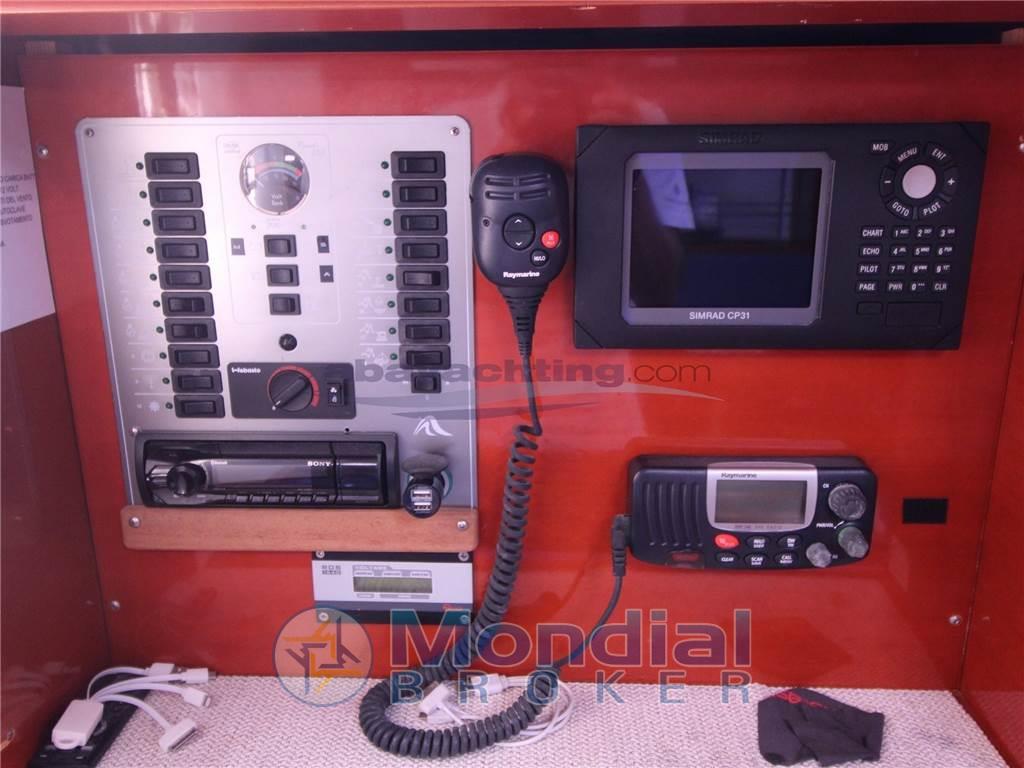 Notas internasNotas de la instrumentaciónBussola (PLASTIMO), Ecoscandaglio (SIMRAD IS12), Log (SIMRAD IS12), Pilota automatico (SIMRAD), Plotter con antenna GPS (SIMRAD CP31), Radio VHF (RAYMARINE RAY54E), Stazione vento (SIMRAD IS12).Notas de armamentoAllestimento tecnico e di coperta:Allarme motore, Ancora (DELTA 17Kg + catena 75 metri), Camminamenti laterali in teak, Doccia esterna (Hot/Cold), Elica di prua - bow thruster, Passerella, Pompa di sentina elettrica, Pompa di sentina manuale, Pozzetto Teak, Presa 220V banchina, Salpa Ancore Elettrico, Sartiame spiroidale, Scaletta da bagno, Tavolo pozzetto (amovibile), 4 Winch, Windex. Dotazioni domestiche di bordo: Impianto acque nere (Su entrambe i bagni), Prese interne 12v, Prese interne 220v, Riscaldamento (Webasto), 2 Serbatoio Acque Nere (ma sono scollegati), 2 WC marino manuale. Intrattenimento: Altoparlanti (INT / EST), Stereo, TV. Cucina ed elettrodomestici: Cucina (2 fuochi a gas), Forno (Gas), Frigorifero interno. Tappezzerie: Cappottina, Cuscineria di prua, Cuscineria Pozzetto. Vele: Randa (FULL BATTEN STECCATA), Fiocco (AUTOVIRANTE), Avvolgi Fiocco, Bompresso, Carrelli a sfera randa, Lazy Bag, Lazy Jack, Tenditore strallo di poppa (Regolabile con paranco in tessile), Trasto randa (In pozzetto), Vang rigido. |