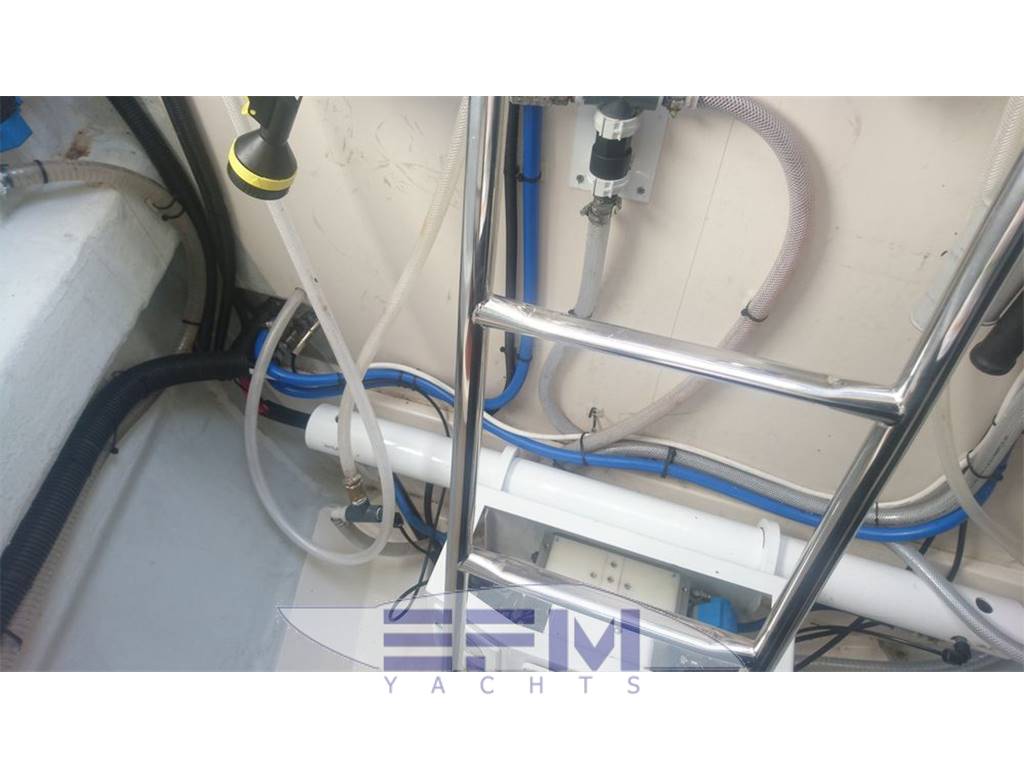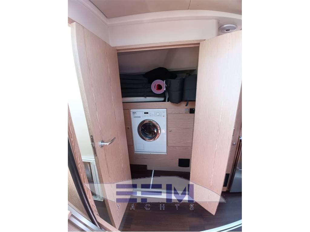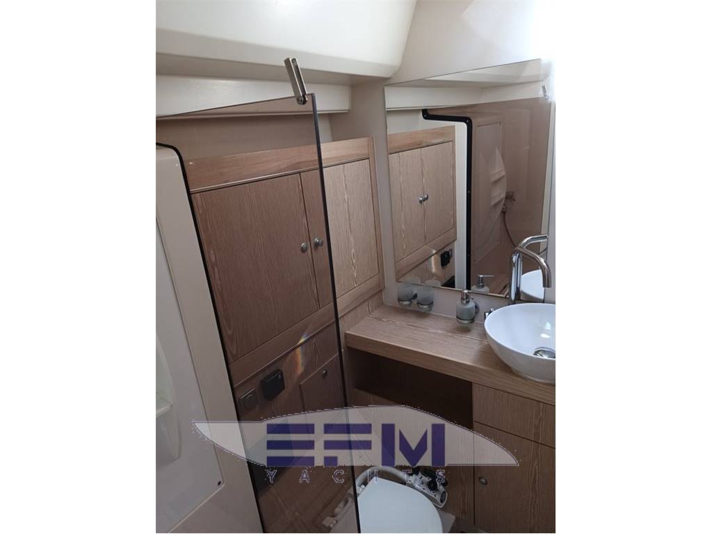 Notas internas• 4 Cabin’s version with large owner cabin, two guest bedrooms, hutility room, two bathroom • Interior finish in itlian oak style satin varnish teak floors • Oceanair blind set with mosquito screens for hatches • Oceanair Venetian blinds for windows • Indirect lights in saloon and bedrooms • LED overead lights in saloon and bedrooms • SLS – Scenario Light System touch screen controller & dimmer Saloon • U-shaped sofas and centre seat in Portofino dark brown leather • Saloon table, electrically retractable for kingsize bed • Flatscreen TV on electric lift • Entertainment system • LED ceiling lights • Indirect lights • Blinds and mosquito screens • SLS-Scenario light system touch screen controller & dimmer Galley • The large straight galley is located at port side • Worktop in black Corian stone • Double stainless steel sinks with hot & cold pressurized water supply • ENO stainless steel gimballed 3-burner propane gas stove with oven • Microwave • 2 x Refrigerator, front door opening • 1 x Freezer, front door opening • Extensive storage capacity Forward owner’s bedroom • Comfortable centre line queen size bed with Deluxe matrass • Various hanging lockers and clothing lockers • En-suite owner’s bathroom with Jabsco electric flush toilet, shower and washbasin Aft guest bedrooms • Two comfortable bedrooms each with double bed and Deluxe matrasses • Hanging lockers in both bedrooms • En-suite bathroom at starboard side bedroom with Jabsco electric flush toilet, separate shower cel and washbasin. Hutility cabin • Located in the starboard side • Fitted with sea berth, Miele washer/dryer machine and dedicated storage space Notas de la instrumentaciónNavigation instruments• Navigation lights • 4 x B&G Triton Mulifunction displays, two at each helm position, incl. wind transducer • 2 x B&G Zeus Touch 12” radar/chart plotter/GPS, one at each helm position • 1 X B&G Zeus Touch 8’ with GPS chart plotter at chart table • B&G 3G Broadband radar • NMEA engine information interface for chart plotter • AIS Class B transponder • B&G autopilot with control unit and Fluxgate Gyro Compass RC42 • Antenna for VHF, FM and AIS, incl. splitter • SIMRAD RS25 VHF at chart table, incl. wireless remote handset AHK05 • GoFree wireless link Engine & thrusters • Volvo Penta D3-150, 107kW/146hp diesel engine • Fresh water intercooling • Built 2014 • 3000 Engine hours • Stainless steel shaft drive with 4-blade folding propeller • Bowthruster 24v, retractable incl. battery • Sternthruster 24v, retractable incl. battery Electric installation • 12v/24v/230v electric circuit • 1 x 12v/90Ah engine start battery • 4 x 12v/165Ah AGM domestic batteries • 1 x 12v bowthruster battery • 1 x 12v sternthruster battery • Inverter/Charger 12v/3000W/100Ah, AC panel • Shore power cable • Electric water heater via engine or 230v shore power supply • Electric water pressure system • 12v Cigarette plugs • 230v Power sockets Entertainment system • Multimedia radio/CD/DVD-player, incl. colour display • 2 x High end 2-way speakers in saloon and cockpit • LED TV flatscreen in saloon • TV lifting system in saloon • All-in-one antenna in mast top (VHF/FM radio) Notas de armamentoHull, deck & cockpit• GRP GREY hull with sandwich core, Signal White gelcoat finish with light grey waterlines • 85m draft keel in cast iron/lead bolted to hull • Semi balanced spade rudder • Teak on side decks, coachroof, halyard lids, cockpit floor and seats • Flush deck hatches • Anchor locker • Electric anchor windlass with remote control • Delta anchor 25kg with 60m/10mm galvanized chain • Electrical deck wash pump mounted in bow section with outlet on deck • 6 x Flush mooring cleats • Mooring lines and fenders • Side opening guard railings at both sides • Sunbed cushions on coachroof • Sprayhood in dark grey fabric • Bimini top in dark grey fabric with stainless steel frame bars • Hydraulic opening bathing platform with remote control • Bathing ladder and transom shower hot/cold • Double GRP steering wheels, Y spoke, 2 x 1000mm • Steering wheel covers in dark grey fabric • 2 x Electrically retractable cockpit tables, converted in sun beds • Cockpit table cover in dark grey fabric • Cockpit cushions • Cockpit loudspeakers for entertainment system • Courtesy light in cockpit • 2 x Helmsman seats with handrails, covered with teak • Helmsman footrests • Folding gangway 2.20m, with bag Rigging • Aluminium anodised Seldén triple spreader mast and boom • Stainless steel standing rigging • Furling fore stay • Self-tacking jib track • Stainless steel backstay with hydraulic adjuster • Rigid boomvang • Lazy bag in dark grey fabric with lazy jacks • Seldén MDS slider system • All halyards directed to cockpit • Windex Winches • 2 x Lewmar 65STE EVO electric all-purpose winches • 2 x Lewmar genoa winches Sails • Elvstrøm fast cruising Laminate (FCL) triradial cut performance full batten main sail • Elvstrøm fast cruising Laminate self-tacking jib in FCL with UV-protection strip • Dyneema halyards, main & jib Safety • 2 x Fire extinguishers • Electric bilge pump • Manual bilge pump • Emergency tiller |