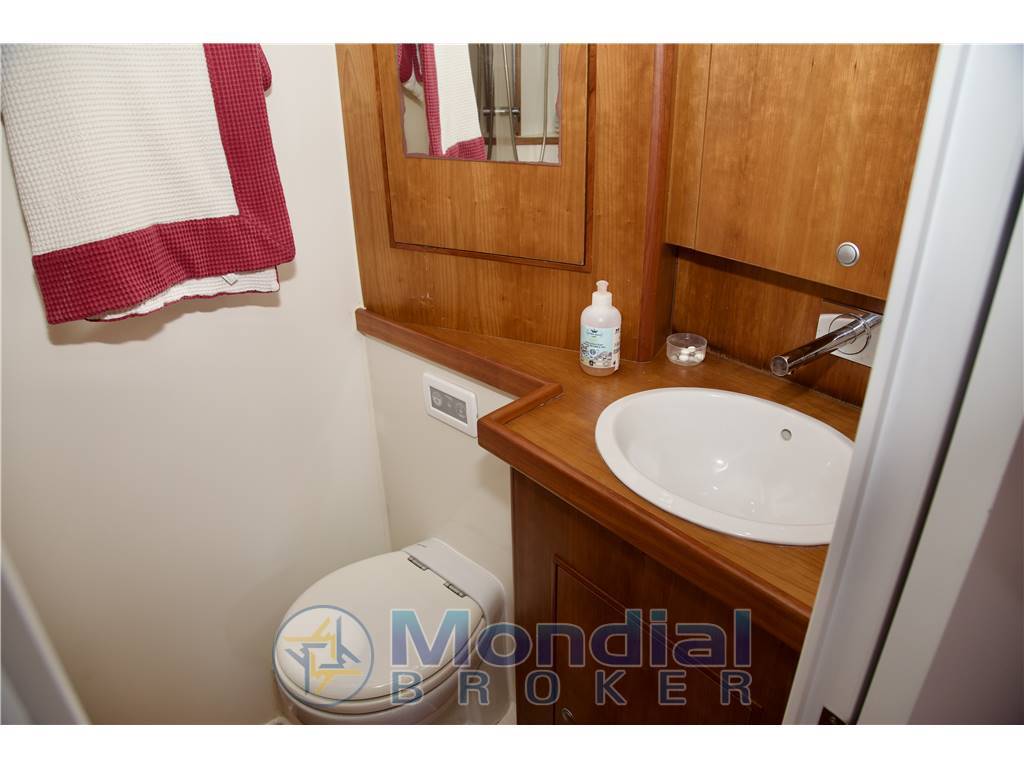 Scafo - Scafo costruito con vetroresina preimpregnata con tessuti in resina epossidica, polimerizzati sottovuoto con schiuma CorecellTM, polimerizzazione post-stampa; Coperta - Costruzione a sandwich posata a mano, isolamento termico e acustico Chiglia - Chiglia in composito standard in ferro / piombo con pescaggio di 2,80 m; - Bulloni della chiglia in acciaio inossidabile Questa imbarcazione è equipaggiata con motore ausiliario entrobordo della Volvo Penta del 2021 con 110 cavalli motore, una trasmissione in linea d' asse ed un elica quattro pale abbattibili. A servizio dell' armatore durante le manovre in porto un elica di prua 24V retrattile della Quick. Un generatore Fisher Panda 12kw a servizio degli ospiti durante le vacanze in rada |
