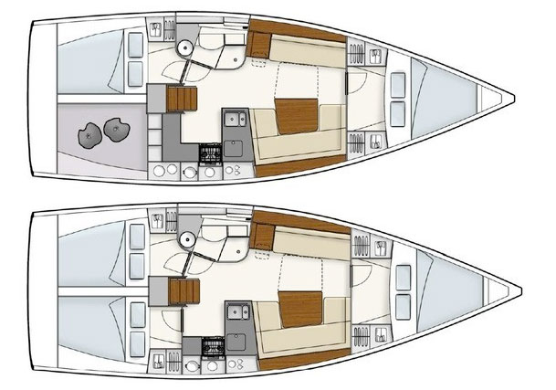 Notas internas2 cabinas de baño versión 1:1 arco doble maestro de cabina con armarios y cajones 1 doble cabina popa sx 1 baño ducha separada dx de lado de gabinete U-cocina con encimera de gas, horno, refrigerador y congelador, fregadero con encimera de grifo mezclador numerosas taquillas para estibar la despensa y cocina comedor con mesa plegableAbrir, combina los dos opuestos sofá sofás u a la derecha e izquierda plan de sofá lineal de lado carteggio equipado lado izquierdo al lado del sofá lineal derecha bien utilizable como velas de cala gran armario y otros como alternativa de gran armario, 3 ^ madera Pisos elección de cabina