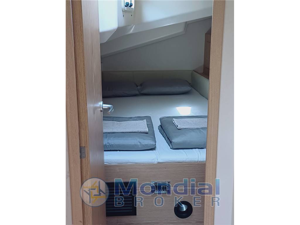Notas internasGavone vele e prua. Cabina armatoriale matrimoniale con letto a isola contenitore, pensili e stipetti, con bagno privato con doccia separata e toilette. Grande salone con cucina a murata a sx (con doppio lavello, piano cottura a gas 3 fuochi con forno e grill, cappa aspirante, frigo con doppio scomparto ca.140lt, microonde) e dinette a dx con divano a L (convertibile in cuccetta), tavolo centrale e seduta lineare con mobile contenitore. Tavolo di carteggio a dritta. Tappezzeria in pelle "Portofino" (color cioccolato). Cabina a babordo verso poppa fianco cucina con letto a castello. Due cabine ospiti doppie a poppa, Bagno ospiti con toilette e doccia. Notas de la instrumentaciónB&G Triton display multi al posto di guida (velocità, profondità, temperatura), 2 bussole con basi vicino alla consolle di governo, Log e Echo.Comandi motore sulla consolle di dritta. Generatore Fisher Panda, Caricabatterie, Voltaggi 12/220, Batteria motore 12V 90Ah + 2 servizi 12V 165Ah (2024). Notas de armamentoSloop, Rullafiocco, Set completo di vele dacron Elvstrom Sails (2020): Randa stecche orizzontali, Fiocco autovirante; Gennaker.Lazy bag e Lazy Jack. Scotte e drizze configurate secondo il “German System”. Albero anodizzato 2 ordini di crocette acquartierate, Rotaia fiocco autovirante integrata nel ponte, Trasto fiocco autovirante integrato nella tuga 4 bitte d'ormeggio incassate, Salpancora elettrico con comando dal ponte, Verricello ancora con rullo per catena integrato, Ancora Delta 25kg, Catena 100mt 10mm acciaio galvanizzato, Pulpiti di prua e poppa inox, 4 winches pozzetto 55 AST EVO Vano motore isolato, Predisposizione per dissalatore. Pompa sentina automatica con sensore di livello + manuale, 2 serbatoi acque nere + 2 serbatoi 35lt con valvole scarico mare o terra per ogni wc, Boiler 20lt elettrico/motore, IceMaker, Sistema audio Fusion NUOVO, Smart Tv. Sprayhood e bimini connessi, Tavolo pozzetto inox piano teak con frigo, Freno boma, Cuscineria pozzetto completa e prendisole tuga, Doccia di poppa c/f, Presa acqua dolce sul ponte, Scaletta bagno inox, Plancetta di poppa apribile, Passerella pieghevole 220cm, Luci di navigazione led, Tender gonfiabile e motore fuoribordo Yamaha 4. |