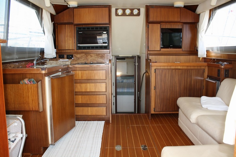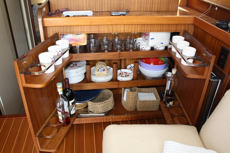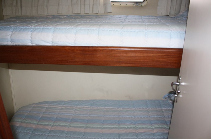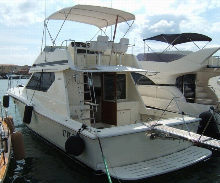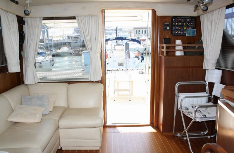 Notas internas-Teca Interior, piso de la teca con lechada arce blanco (2010), sofá de cuero. Notas de la instrumentación-VHF Sailor-profundidad sonda Koden Nautiradar-piloto automático-GPS/Plotter cartografÃa Navionics.Notas de armamento-Onan generador-aire acondicionado-hidráulico pasillo Opacmare-Bimini top-cabina toldo-N ° 2-eje Idrotenute autoclaves-molinete (2009) - a - móviles hélices en la cabina con fregadero y frigorÃfico equipo de seguridad. |