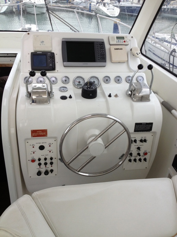 Notas internasNotas de la instrumentaciónsonda, compás de registro velocÃmetro Garmin GPS plotter de gráfico con piloto automático tridata equipo de cartografÃa totalmente equipada controles de motor de motores con palancas y doble timón con reflector eléctrico de antena de Vhf Radio estéreo Tv con antena Tv en torno hidráulico de salón electroNotas de armamento9 Kw generador, plataforma de popa, scala baño y ducha en la puerta de atún de bañera, bañera, baño, pesca en hielo en cabina, refrigerador de la cabina, máquina de hielos, pasarela hidráulica con control remoto, doble enchufe desde el muelle, ancla de limpieza del agua de mar de la sumidero de los bomba w. cadena tapa dura ejecutar con dos ojos de buey para ventilación de limpiaparabrisas 3 amortiguadores al aire libre taquillas de cabina completa (mantenimiento) para equipos de estiba del gabinete con fregadero, refrigerador y encimera en sofá de cabina C con la tabla (bien por encima de) dos cómodos asientos en la cabina (bajo) para la pesquerÃa deportiva para la puerta de embarque presa en casco de equipo (comprobación de validez) de seguridad lado popa con manto blanco azul lados dos hélices Commons motor entrada a la habitación del toldo de la cabina en el soporte de la varilla de invierno bien cilindros compresor |