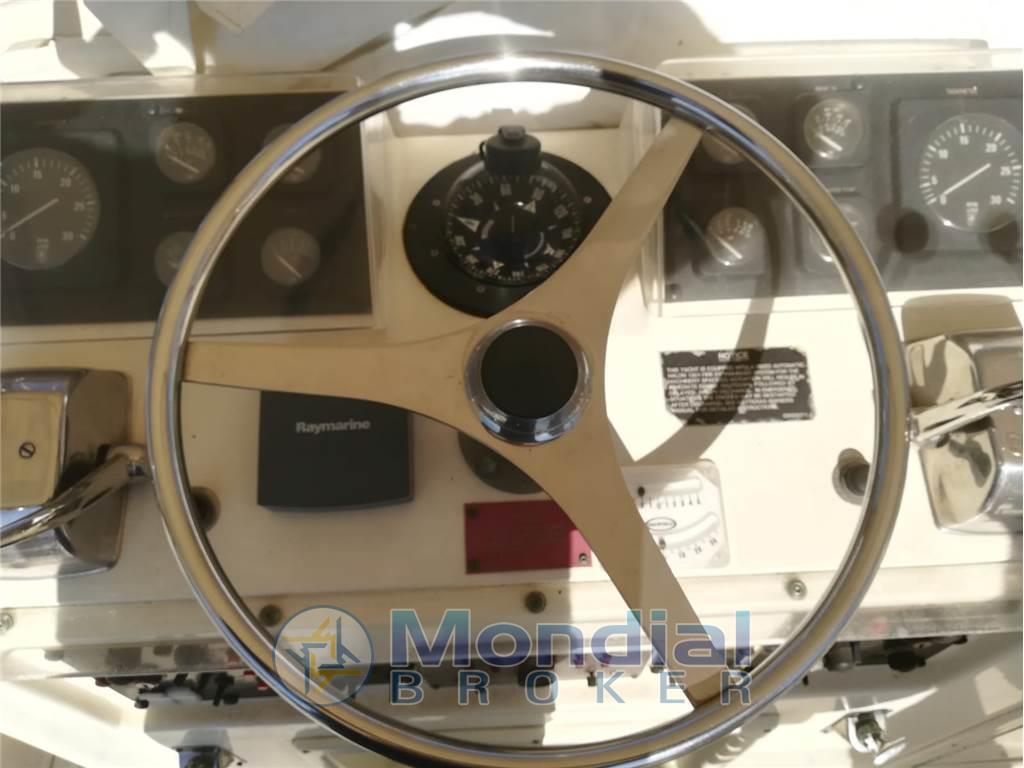 Notas internasNotas de la instrumentaciónAutoclave, Batterie, Bussola, Caricabatterie, Contamiglia, Doccia esterna, Ecoscandaglio, Flap idraulici (N°2), GPS (GEONAV 11 SUSHINE), Passerella, Piattaforma, Pilota automatico (AP200 DL), Pompa di sentina automatica, Pompa di sentina manuale, Pozzetto Teak, Presa 220V banchina, Radar (RAYTHOEN), Raddrizzatore, Radio VHF (ICOM), Salpa Ancore Elettrico, Scaletta da bagno, Tender (CON EVINRUDE 15HP )Notas de armamentoBoiler, Clima reversibile, Cucina, Cuscineria completa, Fornello, Forno, Frigorifero interno (N°2), Stereo, Teli chiusura T-Top, Tendalino, WC marino elettrico, TANKE ACQUE GRIGIE SENZA SCARICO IN MARE |
