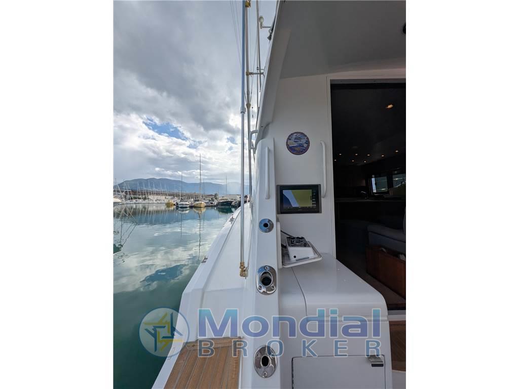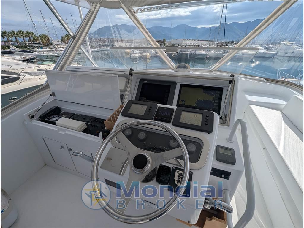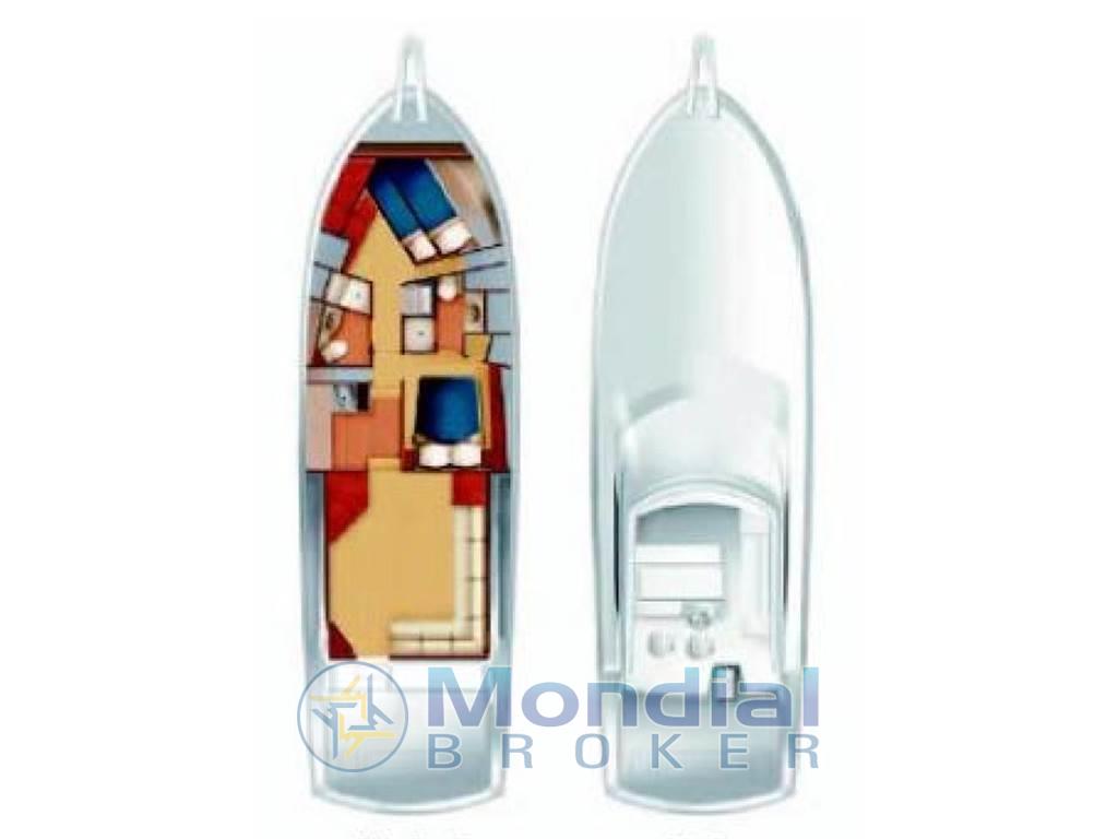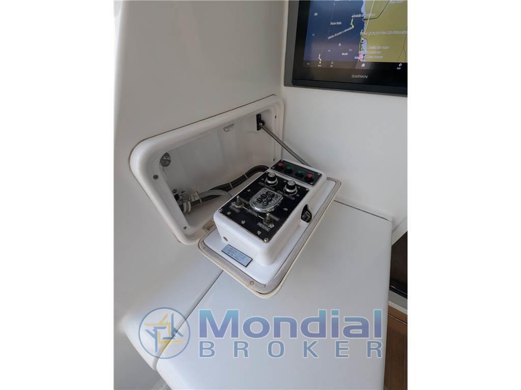 Notas de armamentoAltoparlanti, Antenna Satellitare TV, Aria condizionata, Boiler (bivalente), Clima reversibile, Congelatore, Cucina, Cuscineria di prua, Decoder satellite, Digitale Terrestre, Dissalatore (Lt 120/h), Fornello, Frigorifero esterno, Frigorifero interno, Home Theater, Impianto acque nere, Impianto TV, Inverter, Microonde (Combi), Outriggers (doppia crocetta), Pavimento interno in legno, Piastra in vetroceramica, Portacanne (Più portacanne da riposo), Prese interne 12v, Prese interne 220v, Radio AM/FM, Serbatoio Acque Nere, Stereo, Telo copriconsolle, Telo coprisedile, Tendalino (di poppa), Trolling Valve, TV, Vasca del vivo, Vasca pescato, 3 WC marino elettrico, Zanzariere