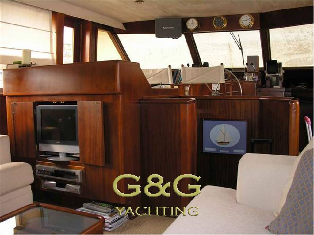 Notas internasNotas de la instrumentación2 VHF, 2 ECO, GPS, navegador de pan, el radarNotas de armamentoestéreo, sentó tv, ligera 25 hp, Gruas, pasarela, rectificador, aire acondicionado, calefacción, nevera, 2 4 congelador, lavadora, toldos, cojines de Sun de hélices, total reacondicionamiento 2004, estabilizadores-moroti riinbarcatibarcati (abril de 2007) en julio de 2011: rev fábrica inyectan aire acondicionado que ahora todos techo agregó turbinas de cabañas-rev sobre la marcha con cierre total |
