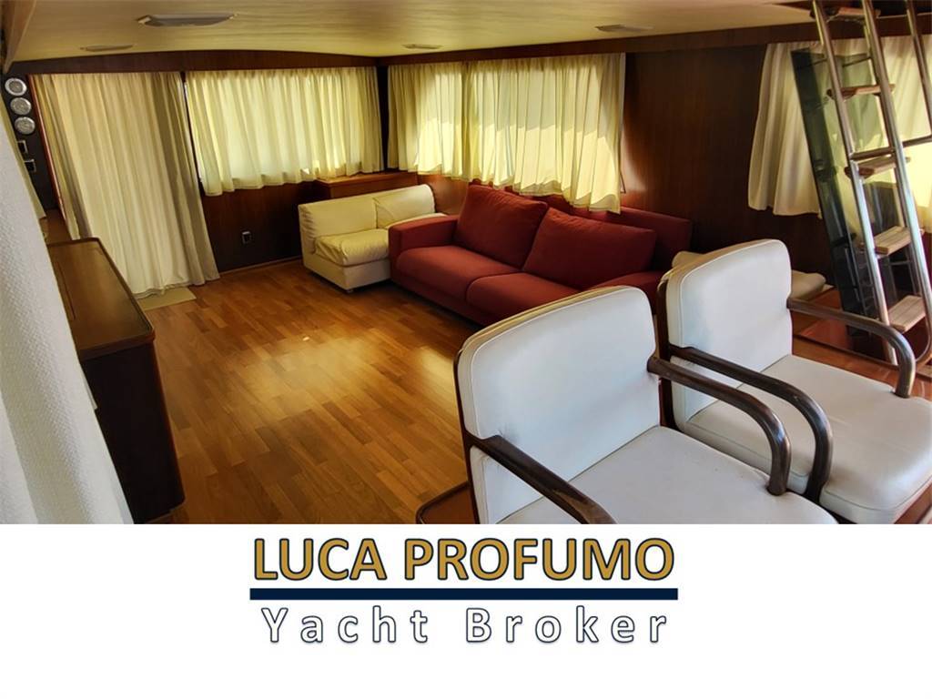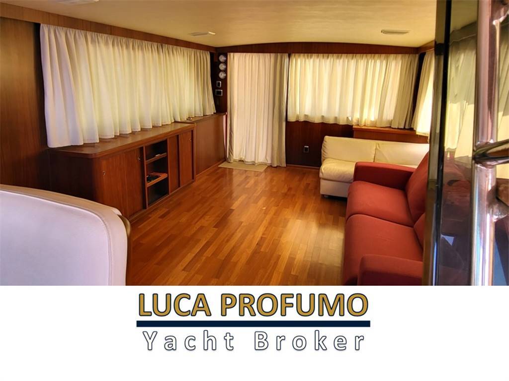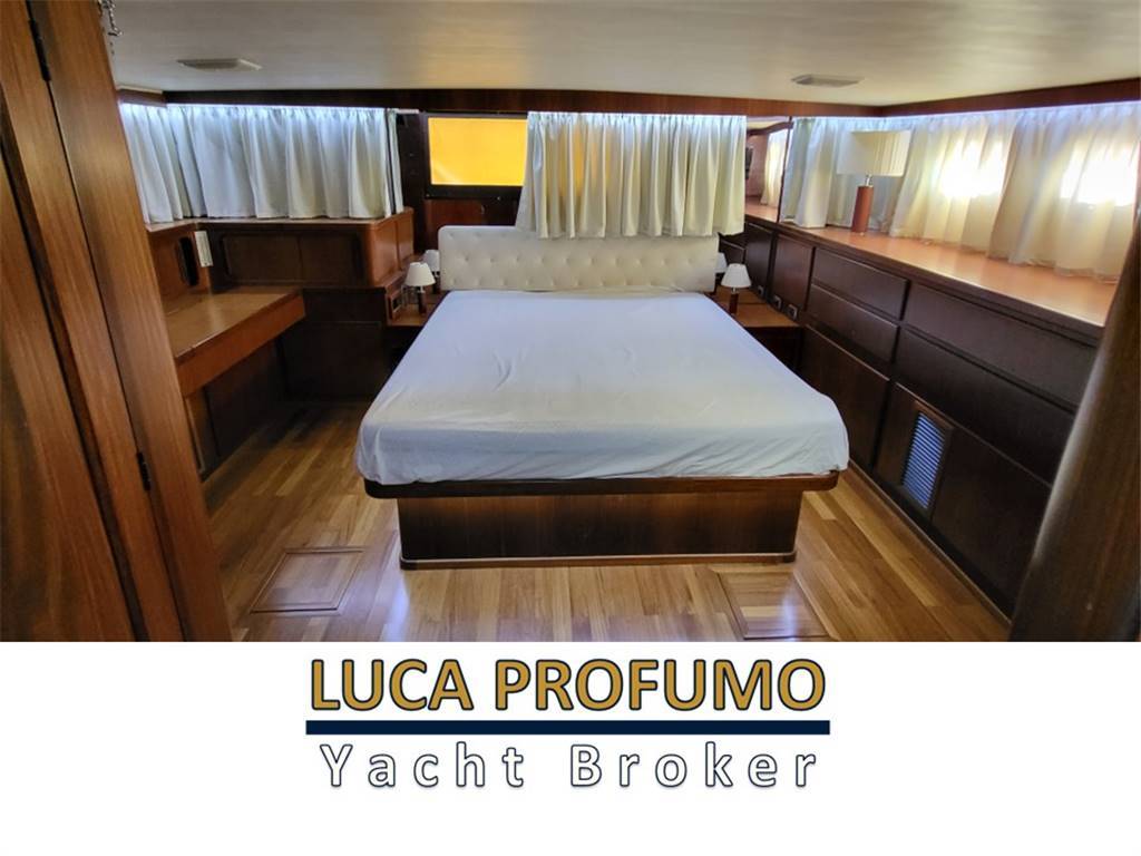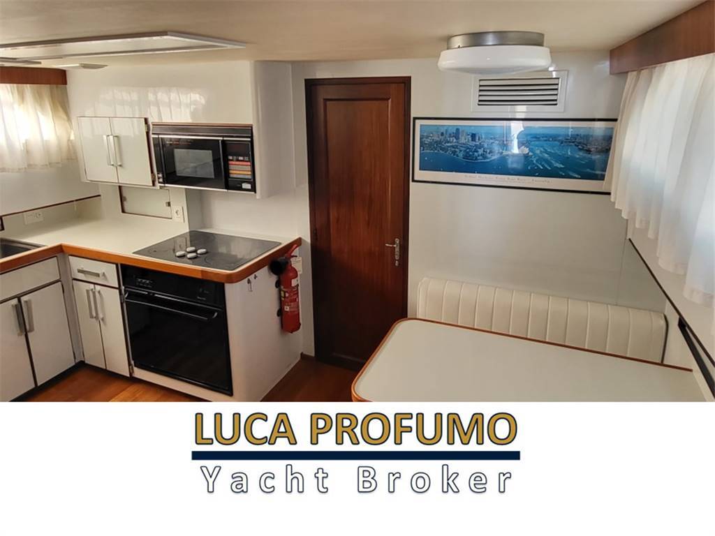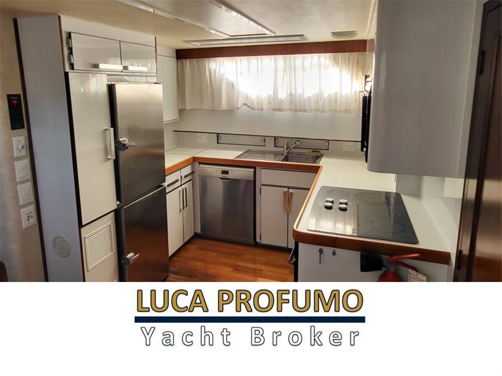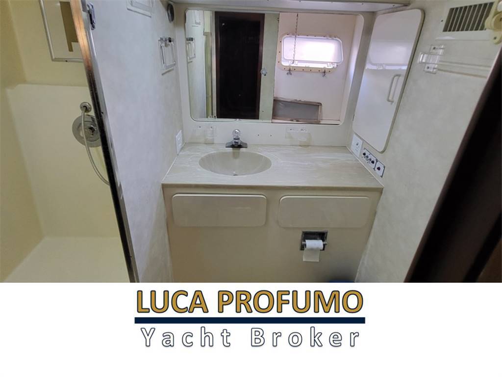 Notas internasCabina armatore a poppa con bagno Cabina ospiti a centro barca con due letti in piano con bagno Cabina a prua con due letti sovrapposti con bagno Cucina e dinette nel lower deck Notas de la instrumentaciónPlotter raymarineRadar Furuno open array Pilota automatico Robertson AP200DL Loudhailer Raymarine RAY410 VHF SEA 156 SSB SEA 322 GPS Furun0 Scandaglio strumentazione Datamarine Notas de armamentoverricello ancora idraulico, due tonneggi elettrici a poppa, passerella idraulica, tendalino pozzetto fisso, Gruetta per tender, hard top con tendalini, Antenna TV SAT, TV a scomparsa nel salone, frigorifero doppio nel salone, Cucina completa di quattro fuochi elettrici, frigorifero, forno elettrico, microonde, cappa aspirante, lavastoviglie, lavasciuga.Climatizzazione, dissalatore, compressore aria, comandi motori pneumatici, pompe spurgo gasolio motori, pompa trasferimento gasolio. |