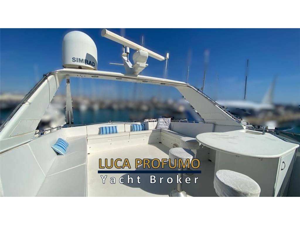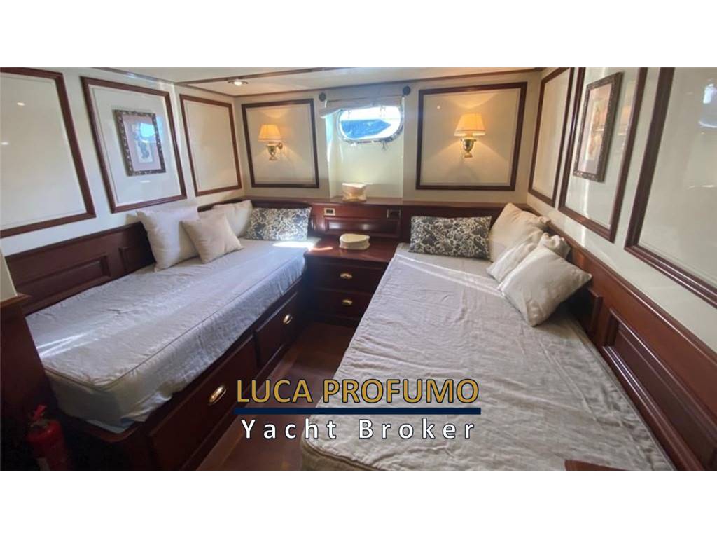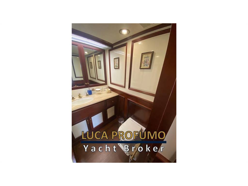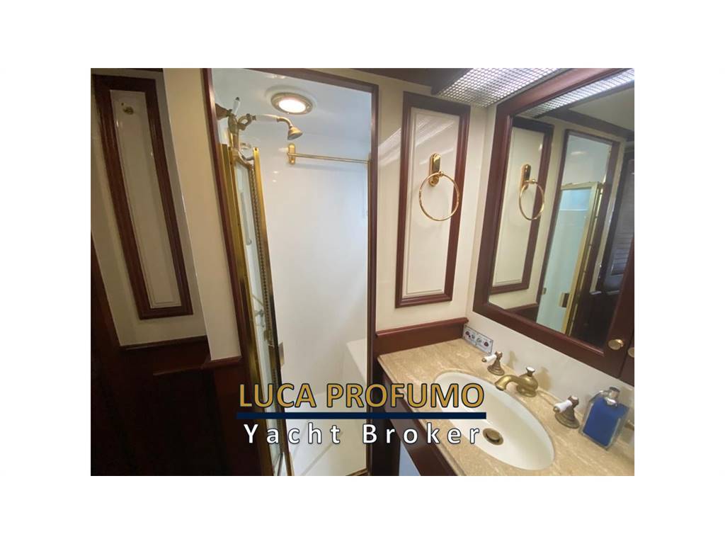 Notas internasCabina armatoriale a centro barca con letto king size, cabina armadio + due bagni e vasca da bagno. Cabina ospiti due letti in piano con bagno e doccia. Cabina ospiti quattro letti con bagno e doccia. Bagno di servizio con doccia nel corridoio. Notas de la instrumentacióncomandi motori elettroniciStazione di comando nel pozzetto. Strumenti motori elettronica DDEC. N. 2 Plotter gps fly e pilothouse Garmin Scandaglio n.2 VHF Garmin 3001/AIS Autopilota Raymarine Telefono satellitare Turaja portatile XT PRO Antenna Tv Simrad Radar Furuno Notas de armamentoElica di prua idraulica. Verricello catena idraulico. Stabilizzatori idraulici Najad (pinne). Passerella idraulica. Verricelli tonneggio a poppa. Dissalatore Sea-recovery . Lavasciuga. Forno. Lavastoviglie. Impianto aspirapolvere centralizzato. impianto pompa per trasferimento olio motore. Priming pump gasolio. Inverter 2000 watts. Compressore aria v.24. Pozzetto e caminamenti in teak. N2 gruppi elettrogeni Northen Light Kw 20. Climatizzatore in tutti i locali. |