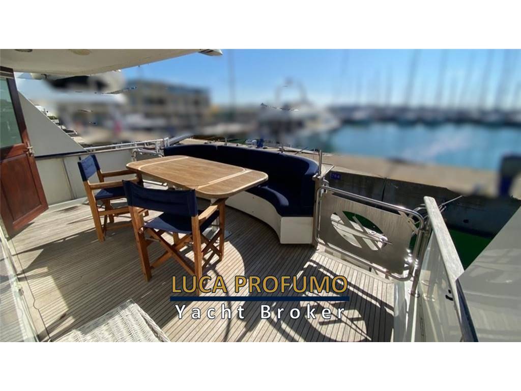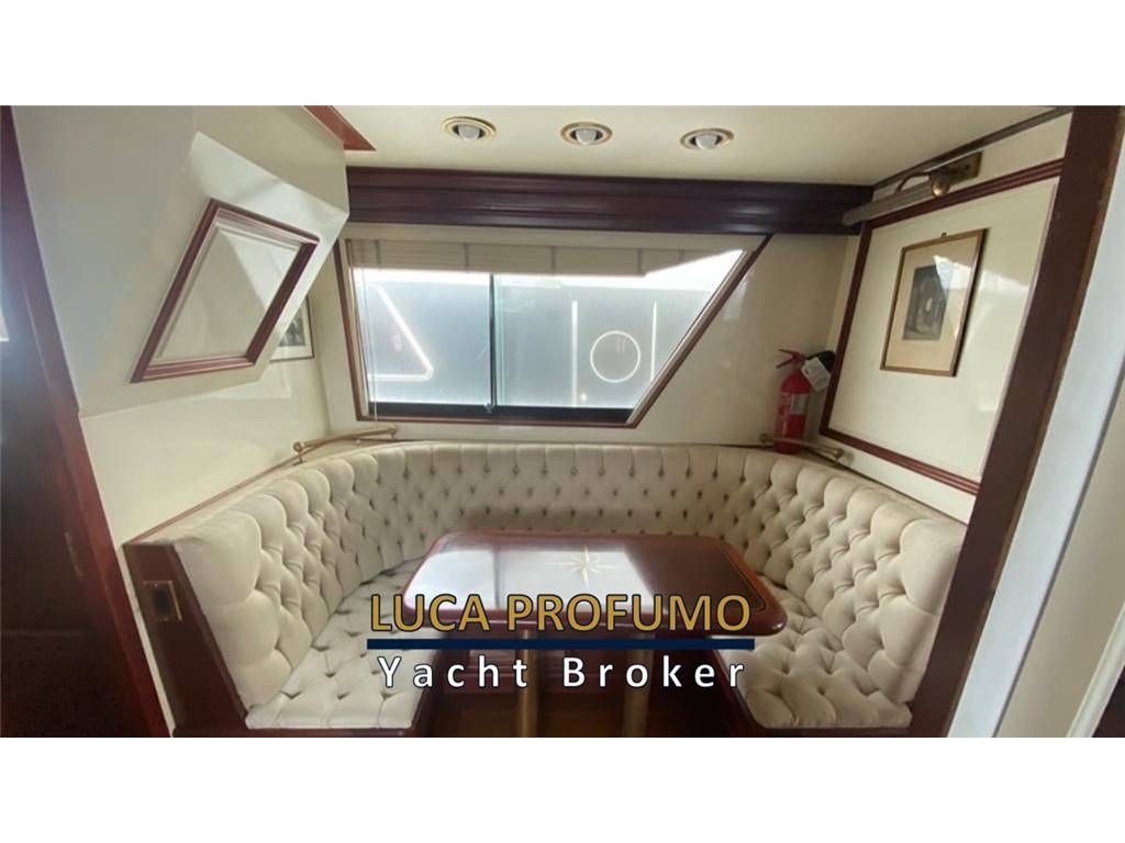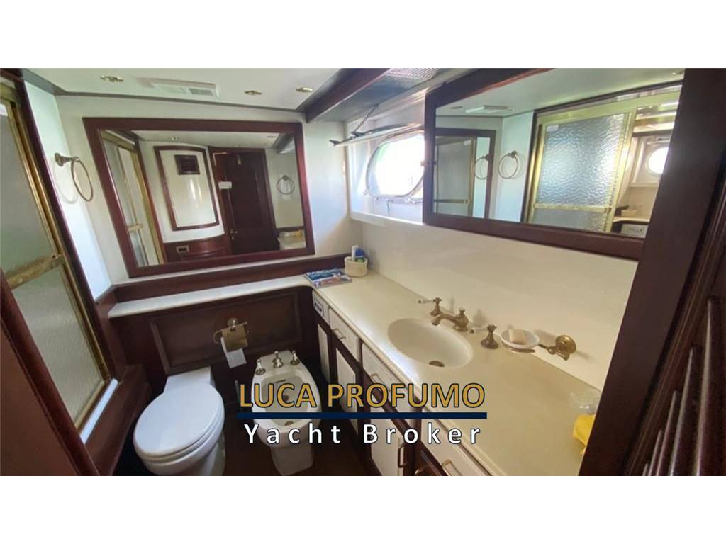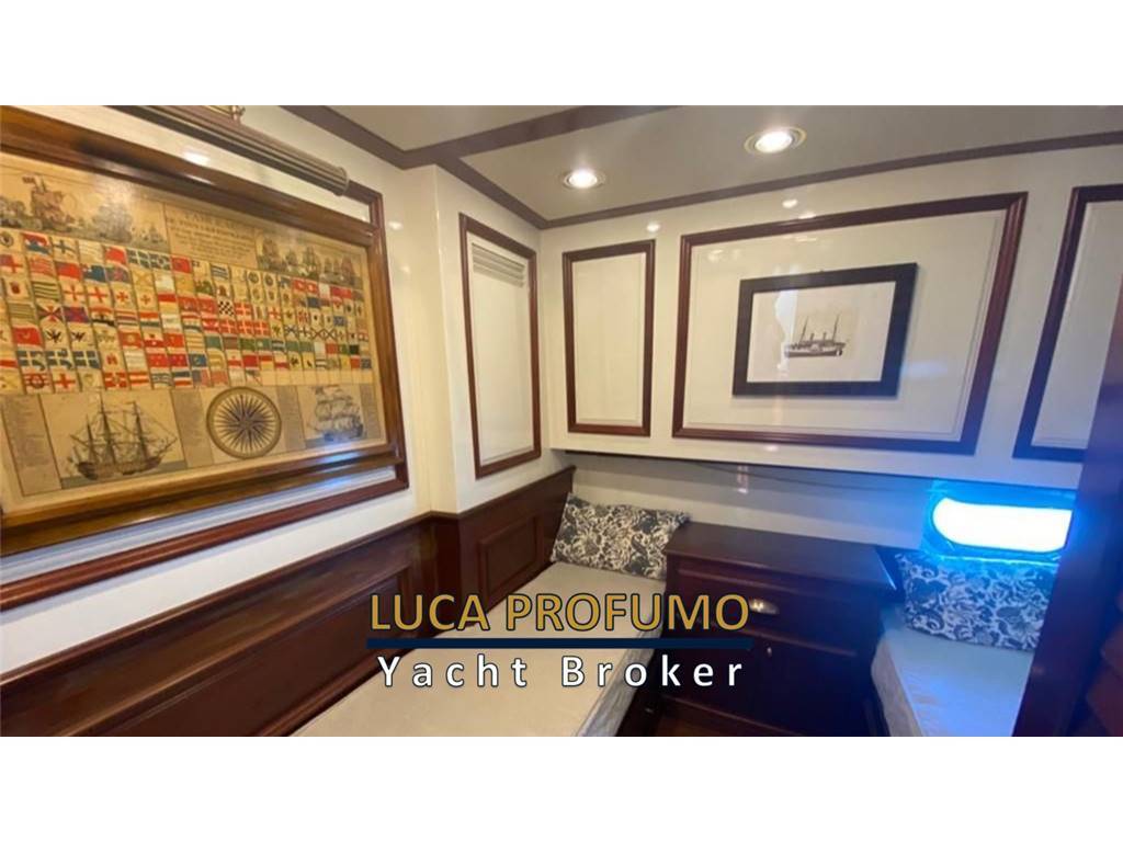 Notas internasCabina armatoriale a centro barca con letto king size, cabina armadio + due bagni e vasca da bagno. Cabina ospiti due letti in piano con bagno e doccia. Cabina ospiti quattro letti con bagno e doccia. Bagno di servizio con doccia nel corridoio. Notas de la instrumentacióncomandi motori elettroniciStazione di comando nel pozzetto. Strumenti motori elettronica DDEC. N. 2 Plotter gps fly e pilothouse Garmin Scandaglio n.2 VHF Garmin 3001/AIS Autopilota Raymarine Telefono satellitare Turaja portatile XT PRO Antenna Tv Simrad Radar Furuno Notas de armamentoElica di prua idraulica. Verricello catena idraulico. Stabilizzatori idraulici Najad (pinne). Passerella idraulica. Verricelli tonneggio a poppa. Dissalatore Sea-recovery . Lavasciuga. Forno. Lavastoviglie. Impianto aspirapolvere centralizzato. impianto pompa per trasferimento olio motore. Priming pump gasolio. Inverter 2000 watts. Compressore aria v.24. Pozzetto e caminamenti in teak. N2 gruppi elettrogeni Northen Light Kw 20. Climatizzatore in tutti i locali. |