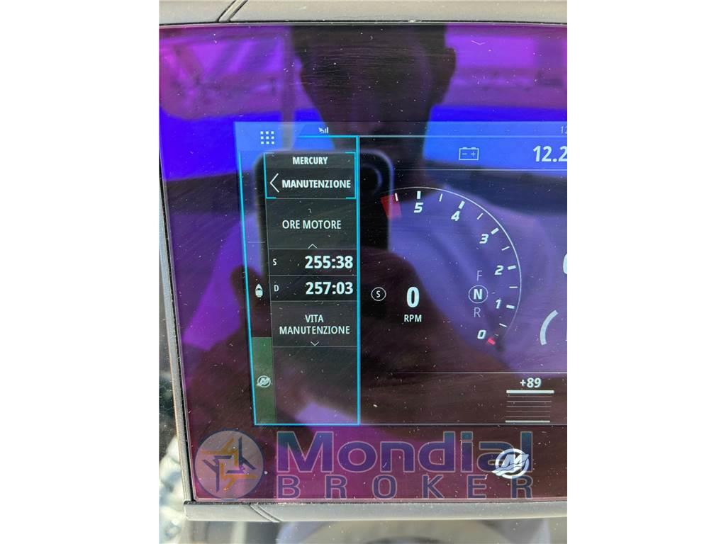 Notas de armamentoStereo Fusion - joystick di manovra - pannello elettronico controllo motori - doccetta - verricello elettrico - t-top in acciaio - prendisole.