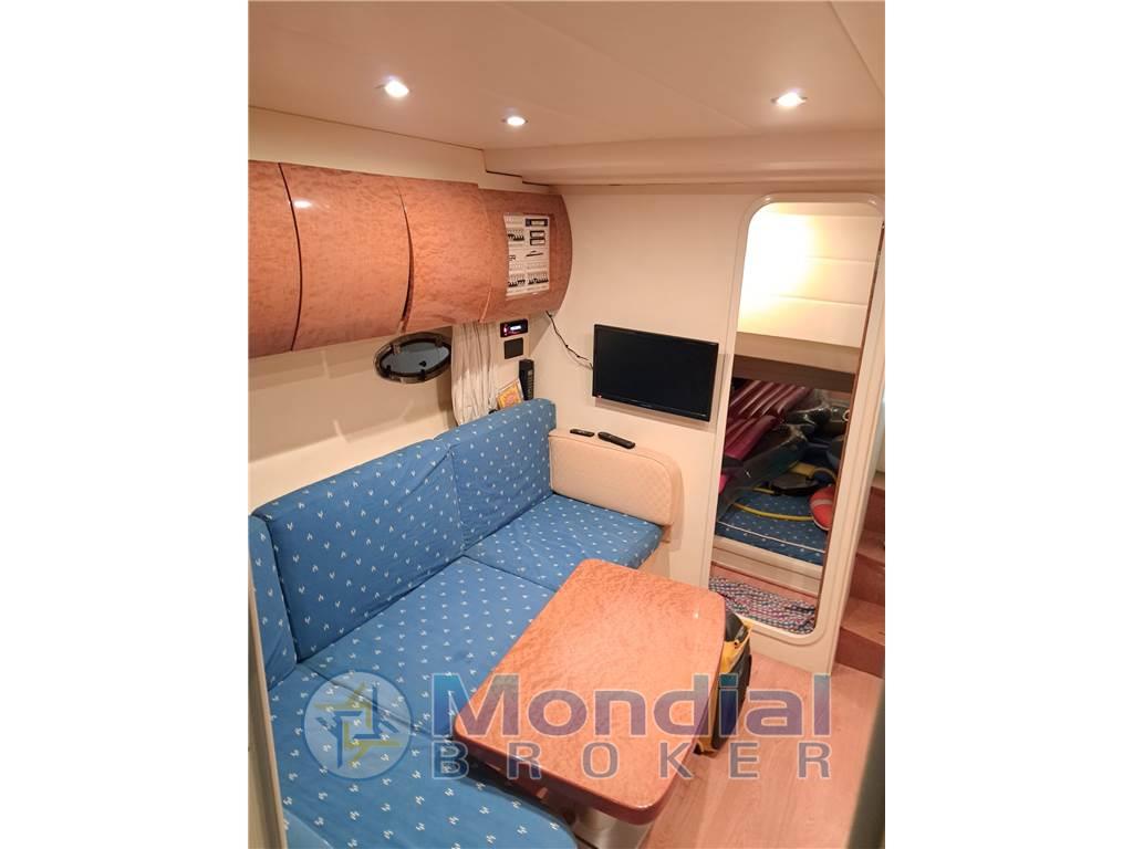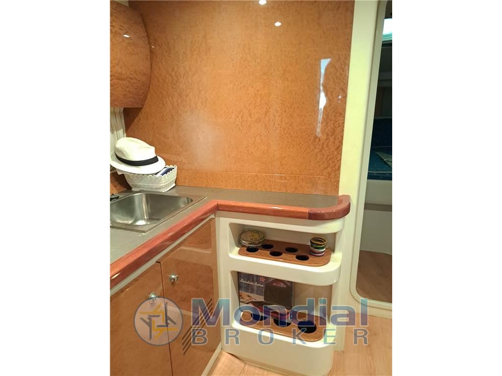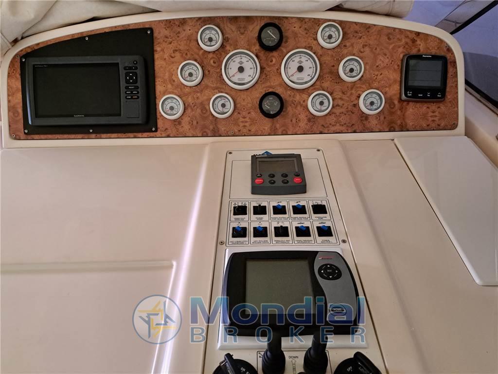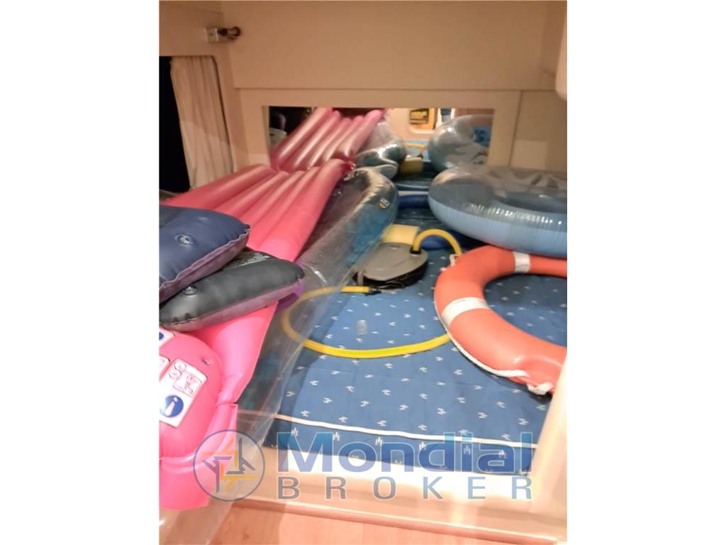 Notas internasNotas de la instrumentaciónAllarme motore, Ancora, Autoclave, Doccia esterna, Ecoscandaglio, Elica di prua - bow thruster, Flap idraulici, GPS, Passerella (IDRAULICA), Piattaforma, Pilota automatico, Plotter, Pozzetto Teak, Presa 220V banchina, Radio VHF, Rollbar, Salpa Ancore Elettrico, Scaletta da bagno, Tavolo pozzettoNotas de armamentoCucina, Cuscineria completa, Frigorifero esterno, Frigorifero interno, Piastra in vetroceramica, Stereo, Tendalino, 2 WC marino elettrico |