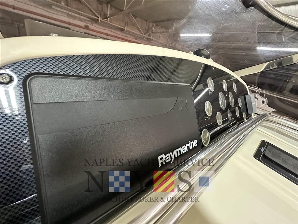 Notas internasNotas de la instrumentaciónAngolo barra, Bussola, GPS (Raymarine 2020), Pilota automatico, Radio VHF.Notas de armamentoAllestimento tecnico e di coperta:Allarme motore, Allarme sentina, Elica di prua - bow thruster, Flap idraulici, Indicatori Flaps, Lavandino nel Pozzetto, Luci di cortesia, Passerella (A scomparsa), Pompa di sentina automatica, Pompa di sentina elettrica, Pozzetto Teak, Presa 220V banchina, Raddrizzatore, Salpa Ancore Elettrico, Tavolo pozzetto, Tientibene con cancelletti. Dotazioni domestiche di bordo: Prese interne 12v, Prese interne 220v, WC marino elettrico. Intrattenimento: Altoparlanti, Stereo. Cucina ed elettrodomestici: Cucina (Induzione 2020), Fornello, Frigorifero interno. Tappezzerie: Cuscineria completa, Cuscineria Pozzetto, Tendalino (2021 - Colore grigio). |