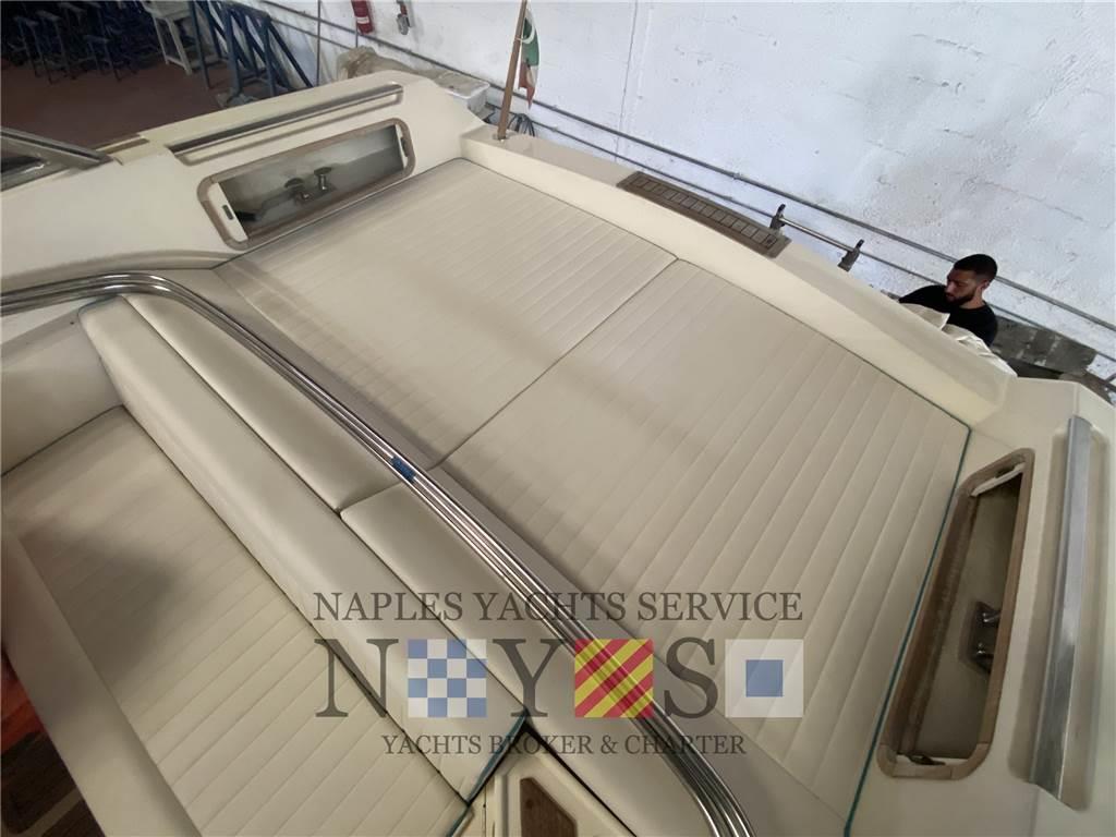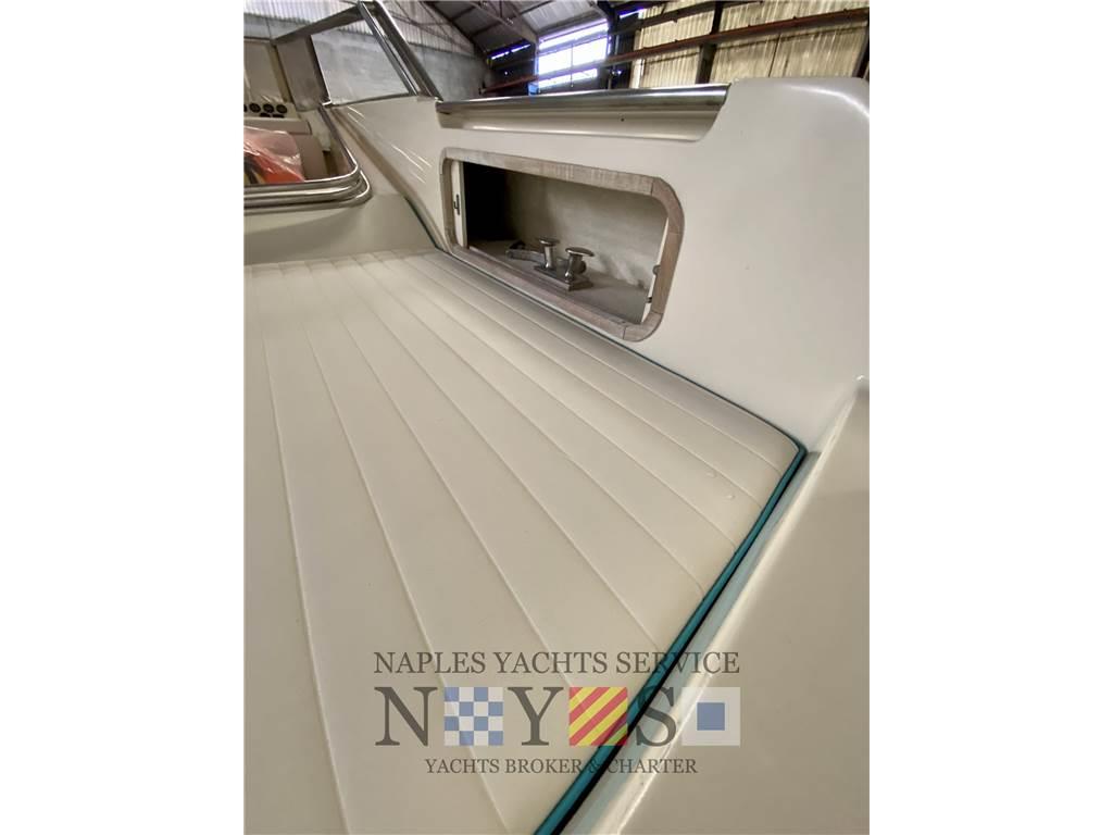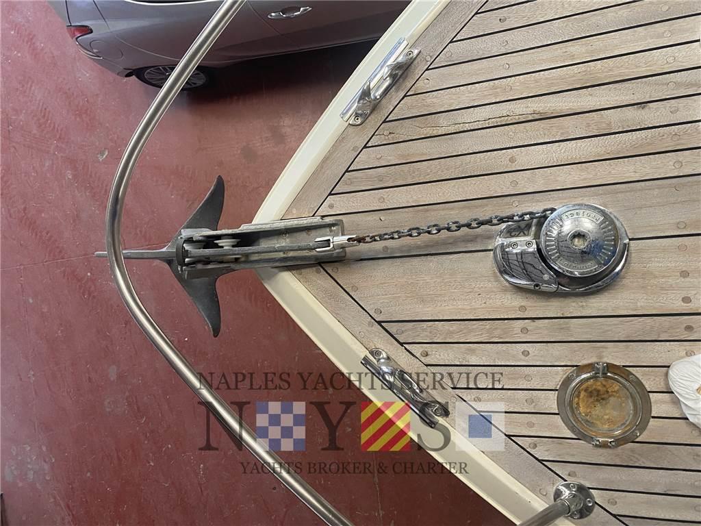 Notas internasDinette Contrapposta con divano Bagno con Wc elettrico con doccia Cucina attrezzata con piano cottura 4 fuochi a gas Notas de la instrumentaciónBussolaContamiglia Ecoscandaglio, Vhf, Autoclave , Doccia Esterna, Raddrizzatore , Salpancora Elettrico, Notas de armamentoDisposizione esternaPrendisole a poppa con cuscineria Plancetta i teak Divano nel pozzetto ad 'elle' Postazione di comando a destra Ponte di prua con rivestimento totale in teak |