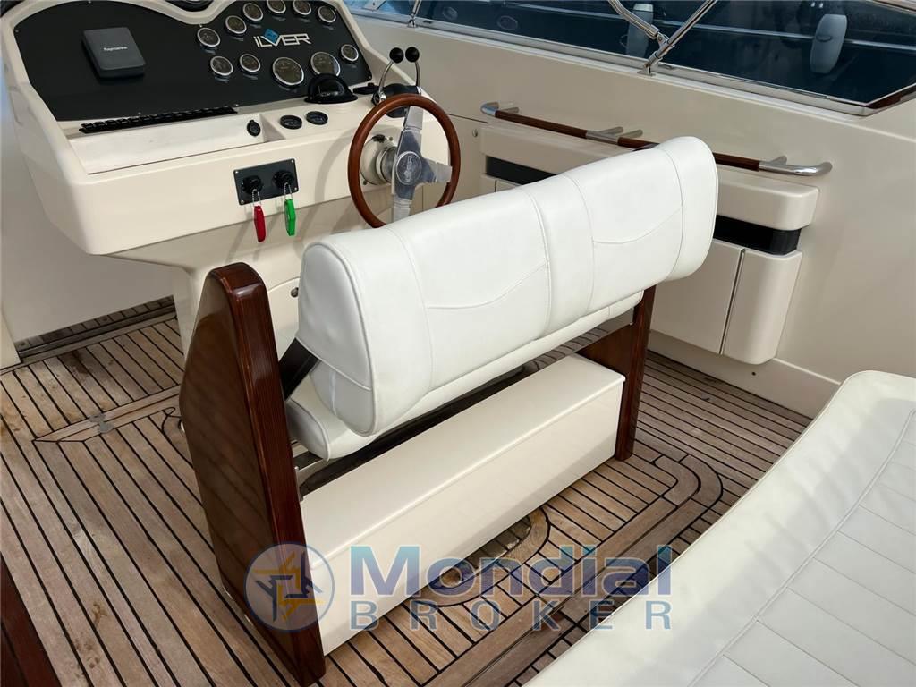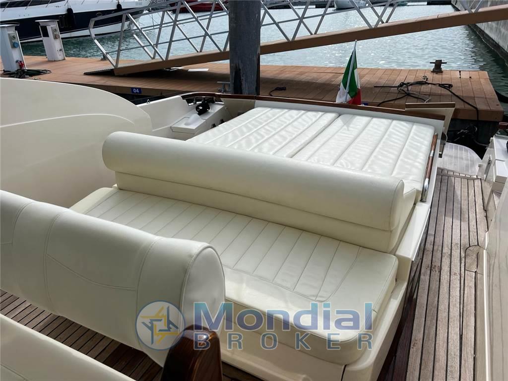 Notas internasNotas de la instrumentaciónBussola, Ecoscandaglio.Notas de armamentoAllestimento tecnico e di coperta:Allarme motore, Flap idraulici, Piattaforma, Pompa di sentina elettrica, Pozzetto Teak, Presa 220V banchina, Salpa Ancore Elettrico, Scaletta da bagno. Dotazioni di sicurezza: Dotazioni di sicurezza entro 12 miglia. Intrattenimento: Stereo. Cucina ed elettrodomestici: Frigorifero esterno, Frigorifero interno. Tappezzerie: Cappottina, Copripozzetto, Cuscineria di poppa. |