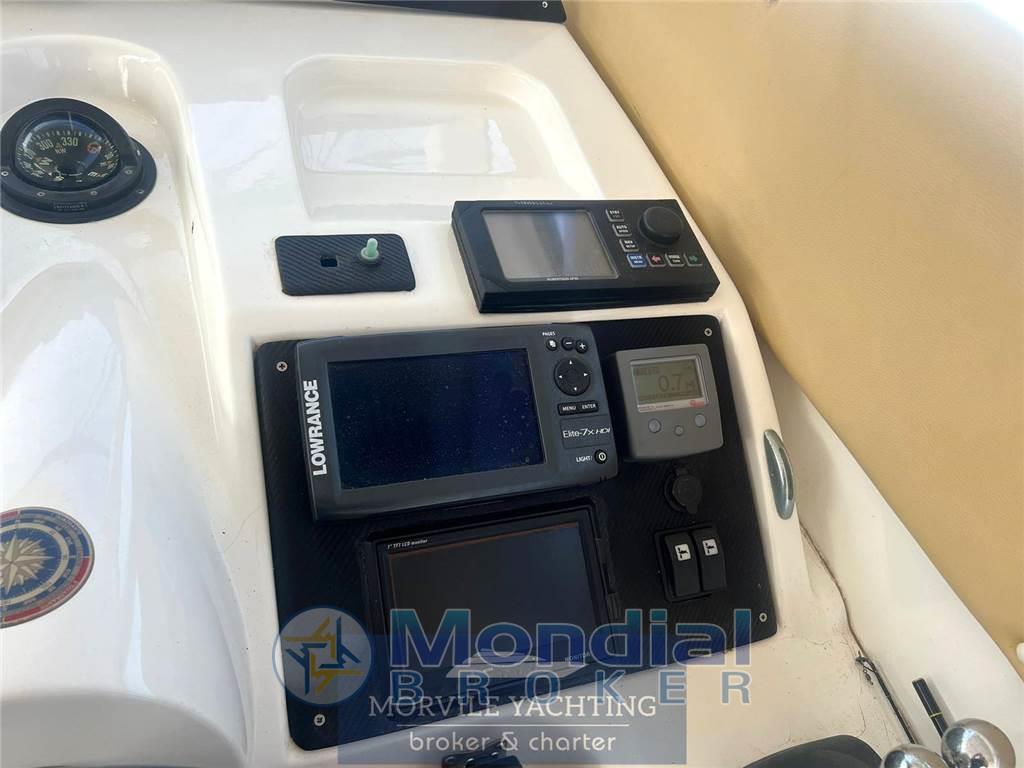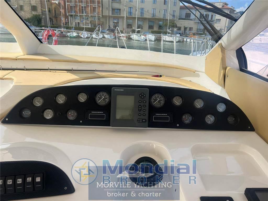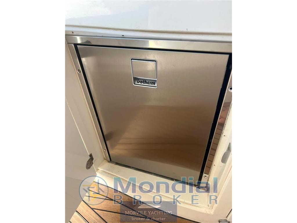 Notas internasCabine: 3 Toilette: 2 Antenna TV satellitare Impianto stereo Impianto TV Tv Bagni: 2 Cabine: 3 Cucina Forno a microonde Forno Notas de la instrumentaciónImpianto elettronico- Ecoscandaglio - Radar - Log-contamiglia - Impianto TV: ANTENNA TV SAT - Centrale di navigazione - Plotter - Lettore DVD - Pilota automatico - Radio - Bussola - Lettore CD - GPS - Altoparlanti di pozzetto - VHF Pilota automatico Baromentro Bussola Comandi flaps Contamiglia Ecoscandaglio GPS GPS-Plotter Log Vhf Notas de armamentoCoperture/Tendalini- Tendalino rigido: HARD TOP ELETTRICO - Tendalino pozzetto Equipaggiamenti Elettrici - Presa corrente a terra - Generatore: 4,5 KW Equipaggiamenti interni - Elica di prua - Pompa di sentina elettrica - Forno - Pompa di sentina manuale - Microonde - WC marino - Aria condizionata - WC elettrico - Riscaldamento - Acqua calda - Frigorifero - Congelatore - Caricabatterie Dotazioni Esterne - Pozzetto in teak - Doccia pozzetto - Passerella idraulica - Cuscineria pozzetto: PRUA E POZZETTO - Tavolo pozzetto - Scaletta bagno Cuscineria Frigorifero esterno Scaletta: 1 Tavolo nel pozzetto |