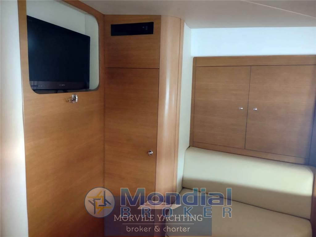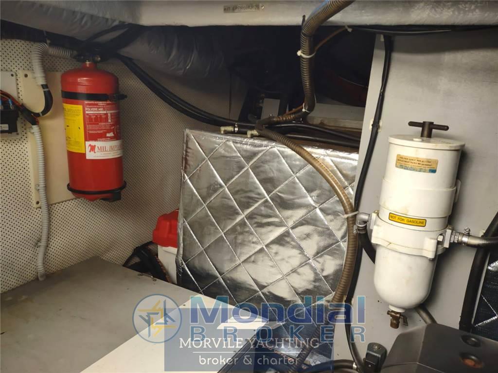 Notas internasCabine: 3 Toilette: 2 Cabine: 3 Notas de la instrumentaciónImpianto elettronico- Ecoscandaglio - Radar - Log-contamiglia - Computer di bordo - Impianto TV: ANTENNA TV SAT - Centrale di navigazione - Plotter - Lettore DVD - Pilota automatico - Radio - Bussola - Lettore CD - GPS - Altoparlanti di pozzetto - VHF Vhf Notas de armamentoEquipaggiamenti interniCoperture/Tendalini - Tendalino pozzetto: ELETTRICO Equipaggiamenti Elettrici - Presa corrente a terra - Generatore: MASE IS 6,5 - Elica di prua - Pompa di sentina elettrica - Forno - Pompa di sentina manuale - Microonde - WC marino - Aria condizionata - WC elettrico - Riscaldamento - Acqua calda - Frigorifero - Caricabatterie Dotazioni Esterne - Pozzetto in teak - Doccia pozzetto - Passerella idraulica - Autogonfiabile - Cuscineria pozzetto - Tavolo pozzetto - Scaletta bagno: PLANCIA POPPA LIFT Dotazioni Addizionali - Controllo tramite joystick |