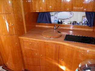 Notas internasGran comedor con sofá de cuero y mesa de comedor. Cocina con horno y microondas, nevera dentro y fuera. Aire acondicionado en todos los entornos, estéreo, color TV. Antena de satélite Notas de armamentoPasserella idraulica fueraborda Johnson winch cojines solarium |