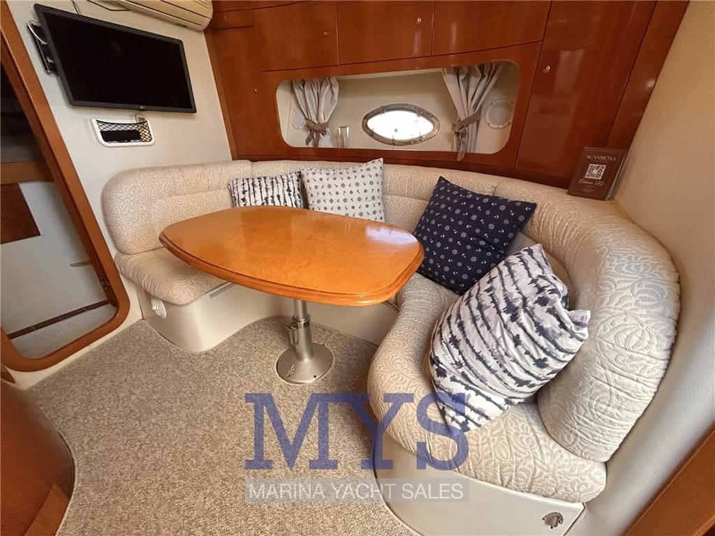 Notas internasCabina armatoriale con letto matrimoniale e bagno privato dotato di WC marino elettrico Cabina ospiti doppia con letti in piano Cucina completa di lavello, Frigo e fuochi a gas Dinette con tavolo da pranzo e divano a C Notas de la instrumentaciónBussolaGPS Ecoscandaglio Pilota automatico 2 Flaps idraulici Indicatori Flaps VHF Salpancora Elettrico Elica di prua - bow thruster Presa 220V da banchina Caricabatterie Frigorifero esterno Impianto TV Prese interne 12v Prese interne 220v Altoparlanti Radio AM/FM Impianto stereo NUOVO 2022 Aria condizionata 2023 Autoclave Boiler per acqua calda Generatore Mase 3,5kw Notas de armamentoAncoraCappottina Cuscineria completa Cuscineria di prua Cuscineria Pozzetto Tendalino NUOVO 2023 Chiusura pozzetto da campeggio e cristal NUOVI 2023 Doccia esterna Piattaforma fissa in teak NUOVO 2023 Rollbar Scaletta da bagno |