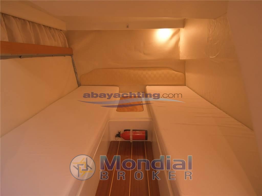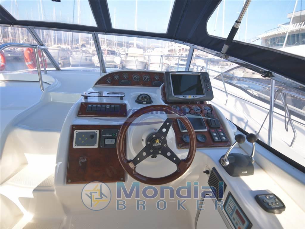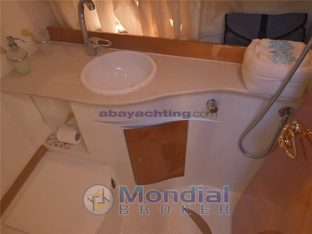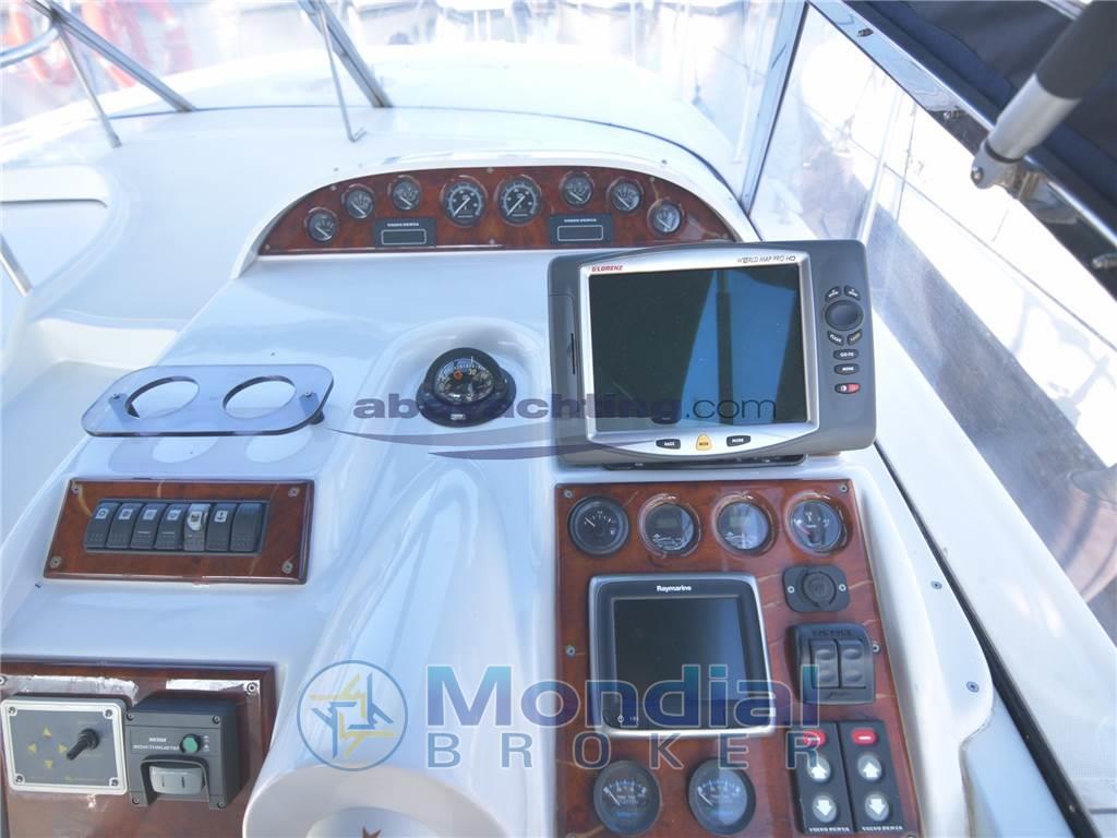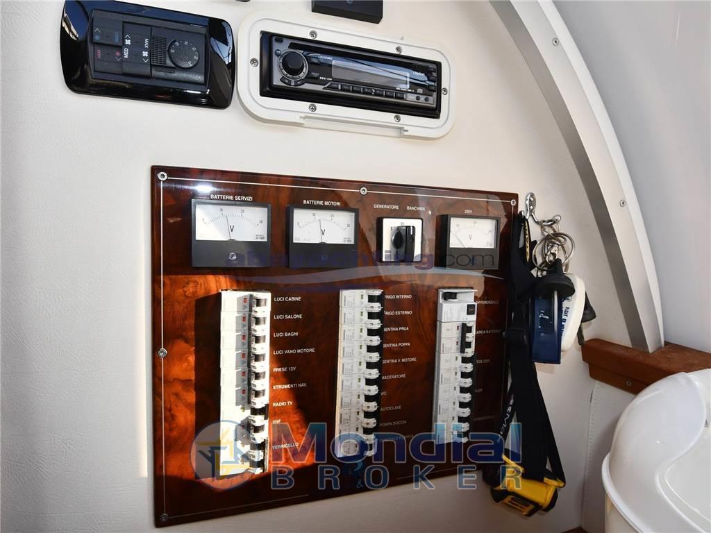 Notas internasNotas de la instrumentaciónBussola, Contamiglia (RAYMARINE), Display (RAYMARINE), Ecoscandaglio (RAYMARINE), Log (RAYMARINE), Plotter con antenna GPS (LORENZ HD WORLD MAP PRO), Radio VHF, Yacht controller.Notas de armamentoAllestimento tecnico e di coperta:Allarme motore, Ancora (+ catena inox 75 mt. 8 mm), Caricabatterie (SI ABER MARINE 40 AMP), Doccia esterna, Elica di prua - bow thruster, Flap idraulici, Impianto antincendio, Impianto Aria Compressa, Luci di cortesia, Passerella (Idraulica), Piattaforma, Pompa di sentina automatica, Pompa di sentina elettrica, Pompa di sentina manuale, Porta ingresso, Presa 220V banchina, Rollbar, Salpa Ancore Elettrico (QUICK), Scaletta da bagno, Tavolo pozzetto (Abbattibile), Tromba. Dotazioni domestiche di bordo: Aria condizionata (Caldo/Freddo), Prese interne 12v, Prese interne 220v, 2 WC marino elettrico. Intrattenimento: Altoparlanti, Stereo, TV. Cucina ed elettrodomestici: Cucina, Fornello, Forno, Frigorifero esterno, Frigorifero interno, Piastra in vetroceramica. Tappezzerie: Bimini ((su timoneria)), Cappottina, Copripozzetto ((+ telo invernale di protezione)), Cuscineria di prua, Cuscineria Pozzetto, Telo copriconsolle. |