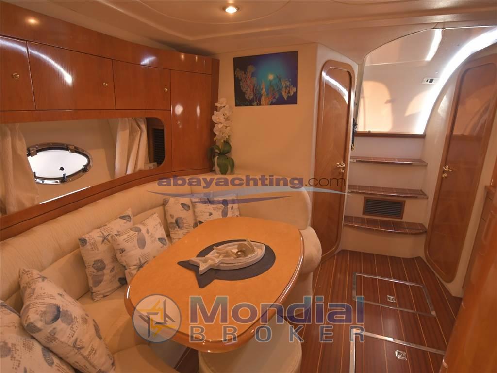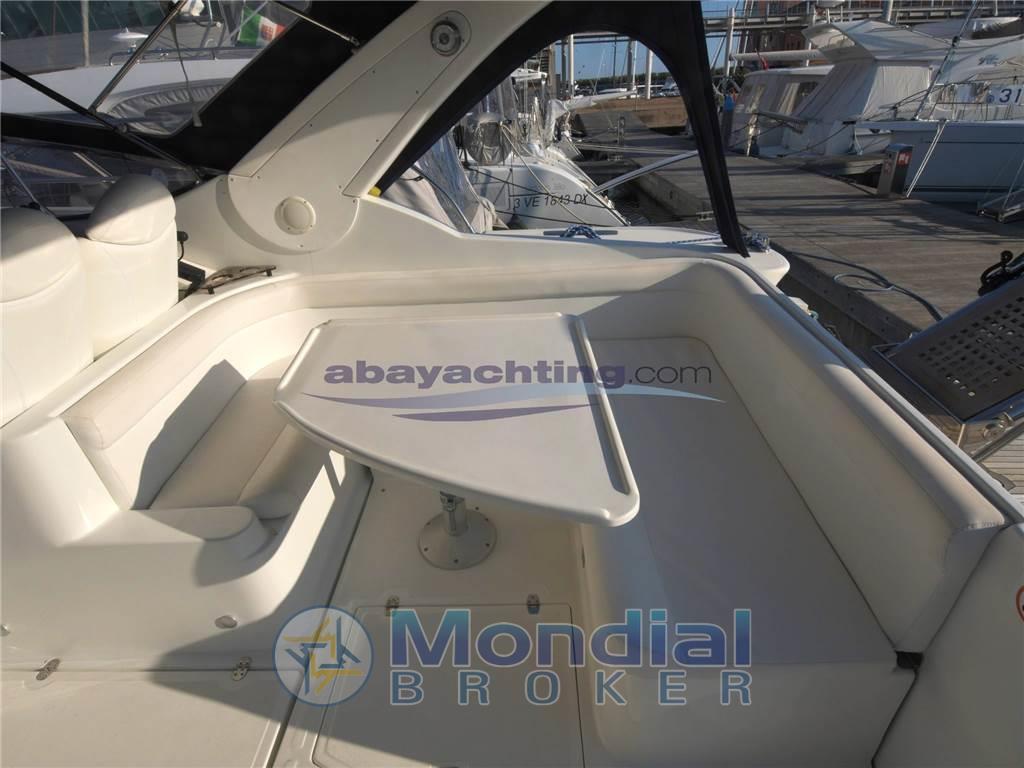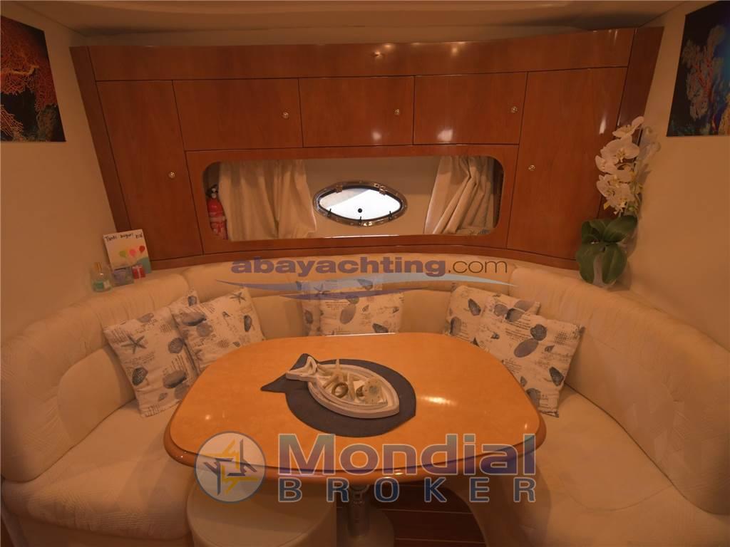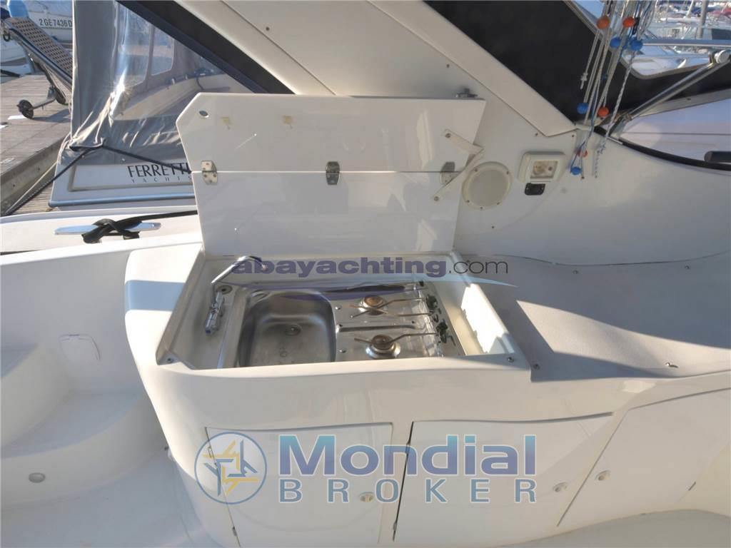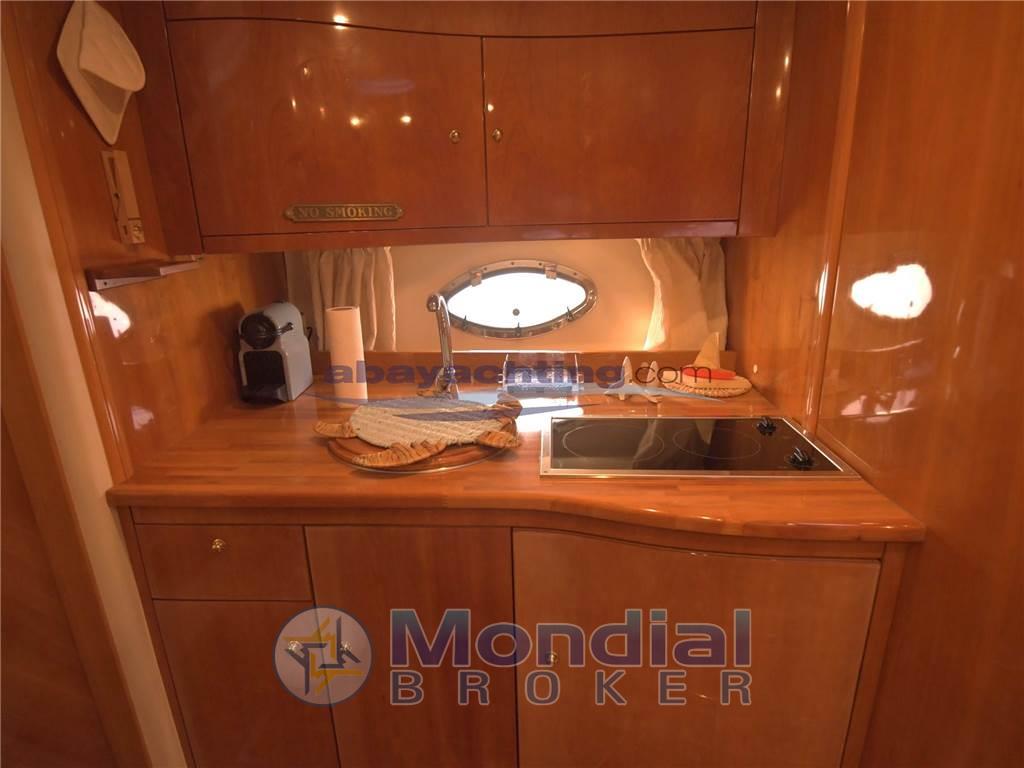 Notas internasNotas de la instrumentaciónBussola, Contamiglia (RAYMARINE), Display (RAYMARINE), Ecoscandaglio (RAYMARINE), Log (RAYMARINE), Plotter con antenna GPS (LORENZ HD WORLD MAP PRO), Radio VHF, Yacht controller.Notas de armamentoAllestimento tecnico e di coperta:Allarme motore, Ancora (+ catena inox 75 mt. 8 mm), Caricabatterie (SI ABER MARINE 40 AMP), Doccia esterna, Elica di prua - bow thruster, Flap idraulici, Impianto antincendio, Impianto Aria Compressa, Luci di cortesia, Passerella (Idraulica), Piattaforma, Pompa di sentina automatica, Pompa di sentina elettrica, Pompa di sentina manuale, Porta ingresso, Presa 220V banchina, Rollbar, Salpa Ancore Elettrico (QUICK), Scaletta da bagno, Tavolo pozzetto (Abbattibile), Tromba. Dotazioni domestiche di bordo: Aria condizionata (Caldo/Freddo), Prese interne 12v, Prese interne 220v, 2 WC marino elettrico. Intrattenimento: Altoparlanti, Stereo, TV. Cucina ed elettrodomestici: Cucina, Fornello, Forno, Frigorifero esterno, Frigorifero interno, Piastra in vetroceramica. Tappezzerie: Bimini ((su timoneria)), Cappottina, Copripozzetto ((+ telo invernale di protezione)), Cuscineria di prua, Cuscineria Pozzetto, Telo copriconsolle. |