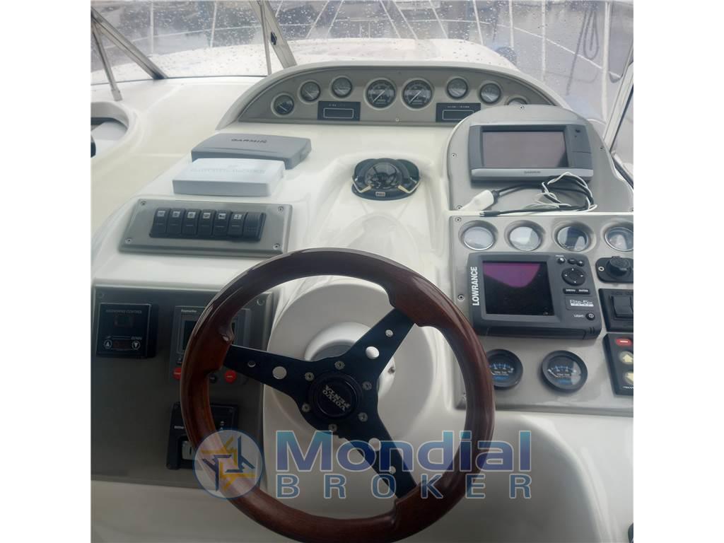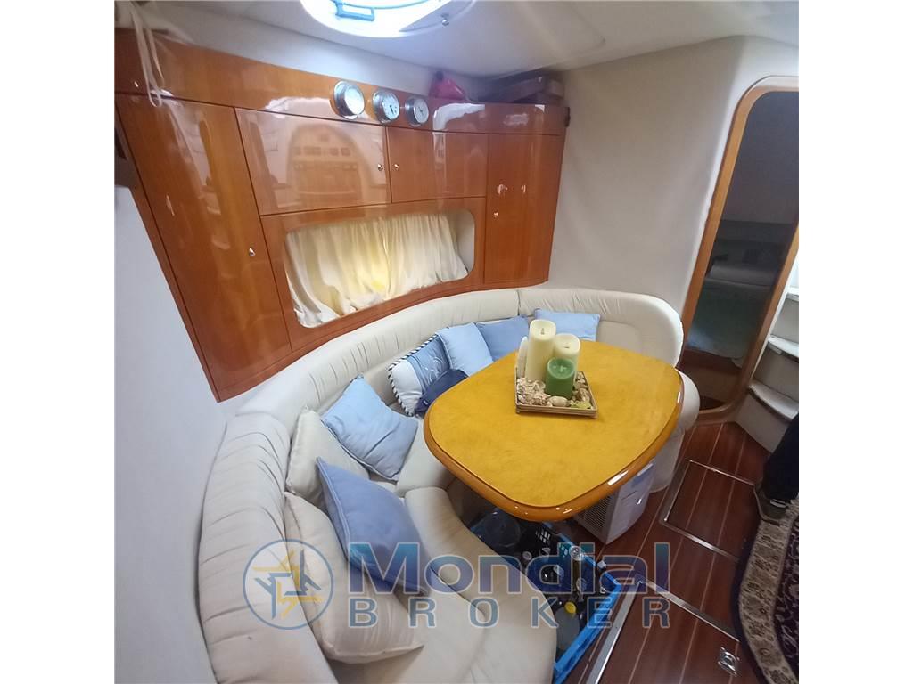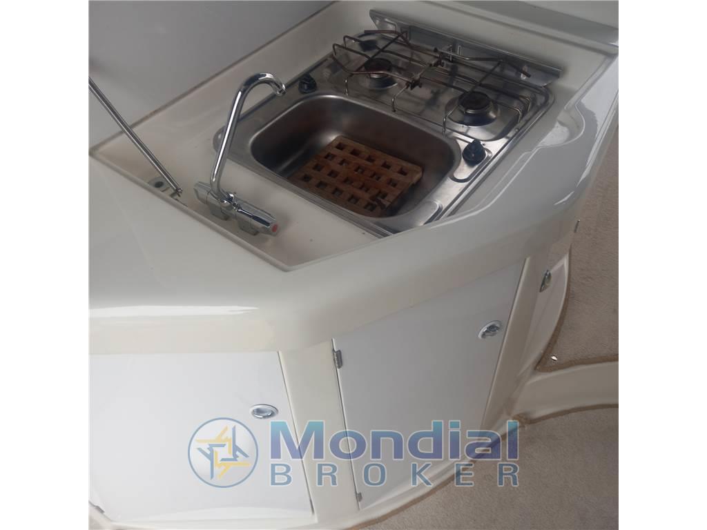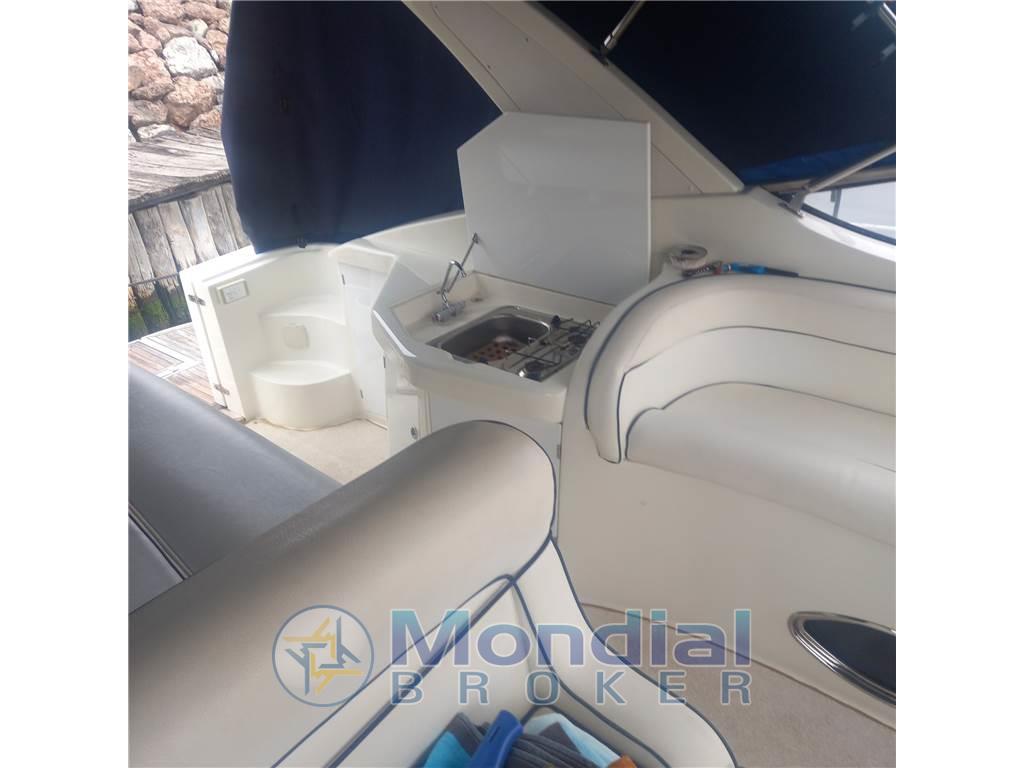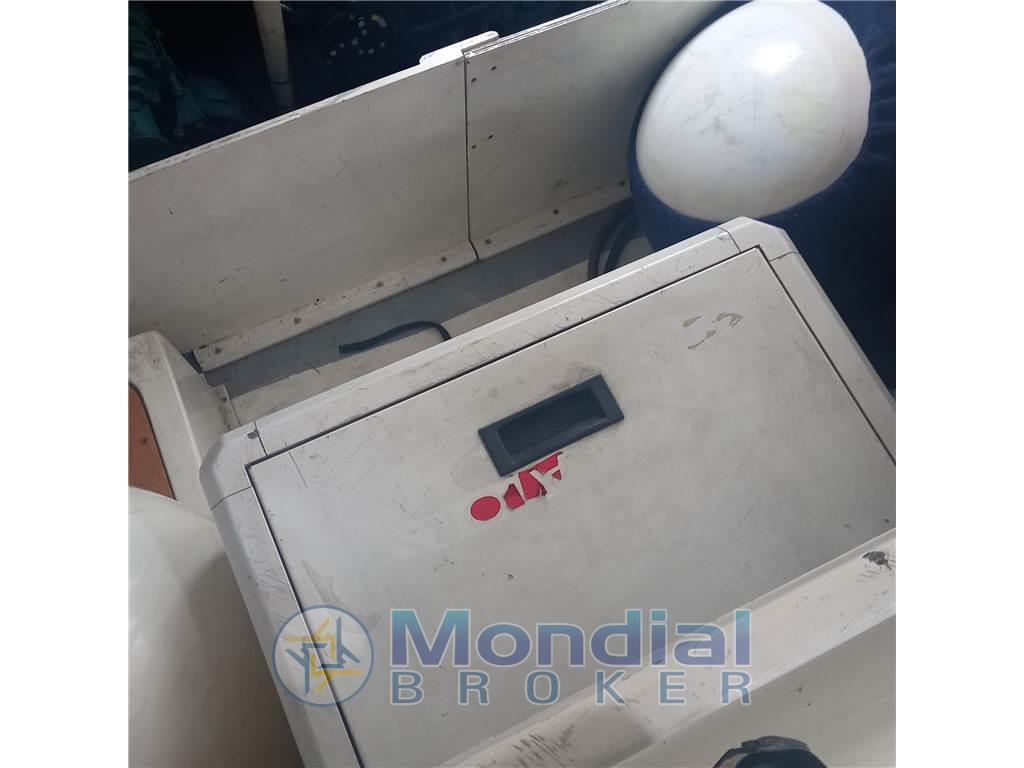 Notas internasNotas de la instrumentaciónAngolo barra, Antenna radar, Bussola, Comando motori elettronico, Computer di bordo, Display, Ecoscandaglio, GPS, Pilota automatico, Radio VHF.Notas de armamentoAllestimento tecnico e di coperta:Allarme motore, Apertura Vano Motore Elettrica, Autogonfiabile, Doccia esterna, Elica di prua - bow thruster, Flap idraulici, Impianto antincendio, Indicatori Flaps, Lavaggio catena, Luci di cortesia, Passerella, Piattaforma, Pompa di sentina automatica, Pompa di sentina manuale, Presa 220V banchina, Presa acqua banchina, Rollbar, Salpa Ancore Elettrico, Scaletta da bagno, Tavolo pozzetto, Tavolo Salone Abbattibile, Tromba. Dotazioni domestiche di bordo: BBQ/ Grill, Impianto acque nere, Pavimento interno in legno, Prese interne 12v, Prese interne 220v, 2 WC marino elettrico. Intrattenimento: Altoparlanti, Digitale Terrestre, Impianto TV, Radio AM/FM, Stereo, TV. Cucina ed elettrodomestici: Cucina, Fornello, Frigorifero esterno, Frigorifero interno. Tappezzerie: Cappottina, Cuscineria completa, Cuscineria di poppa, Cuscineria di prua, Cuscineria Pozzetto, Tendalino. |