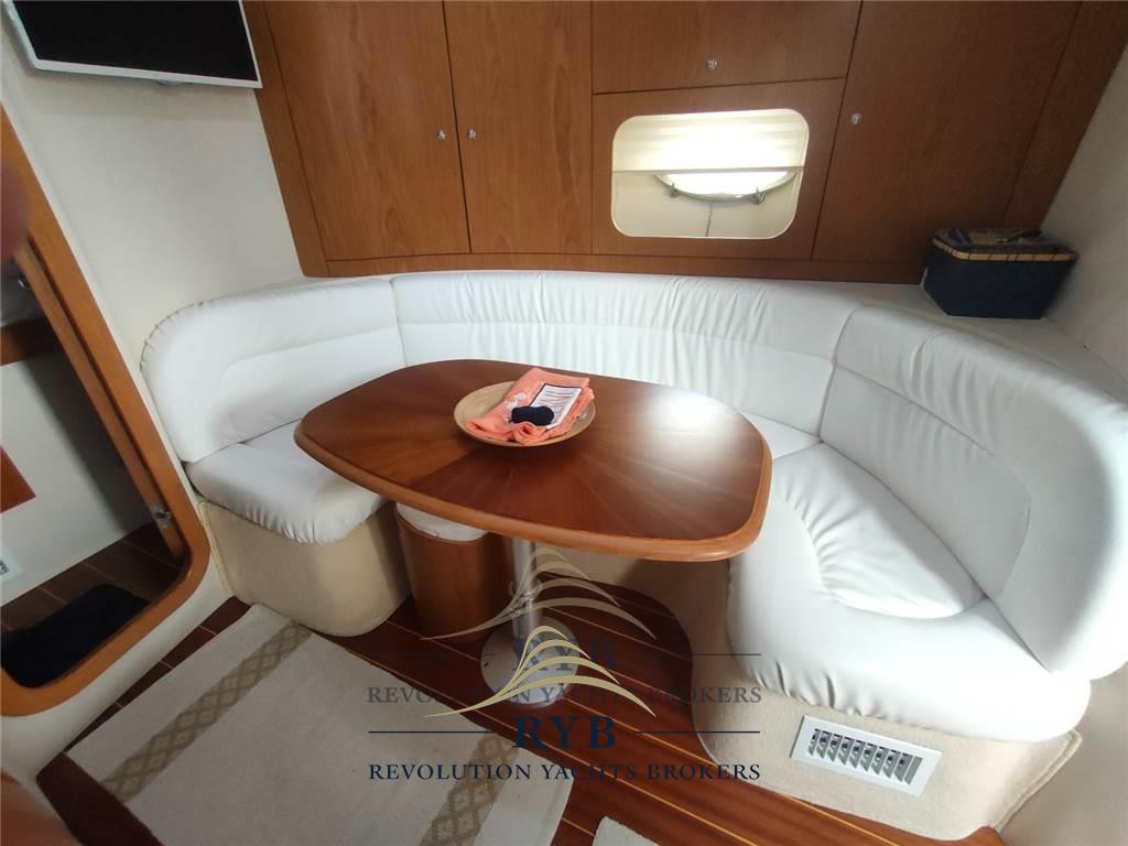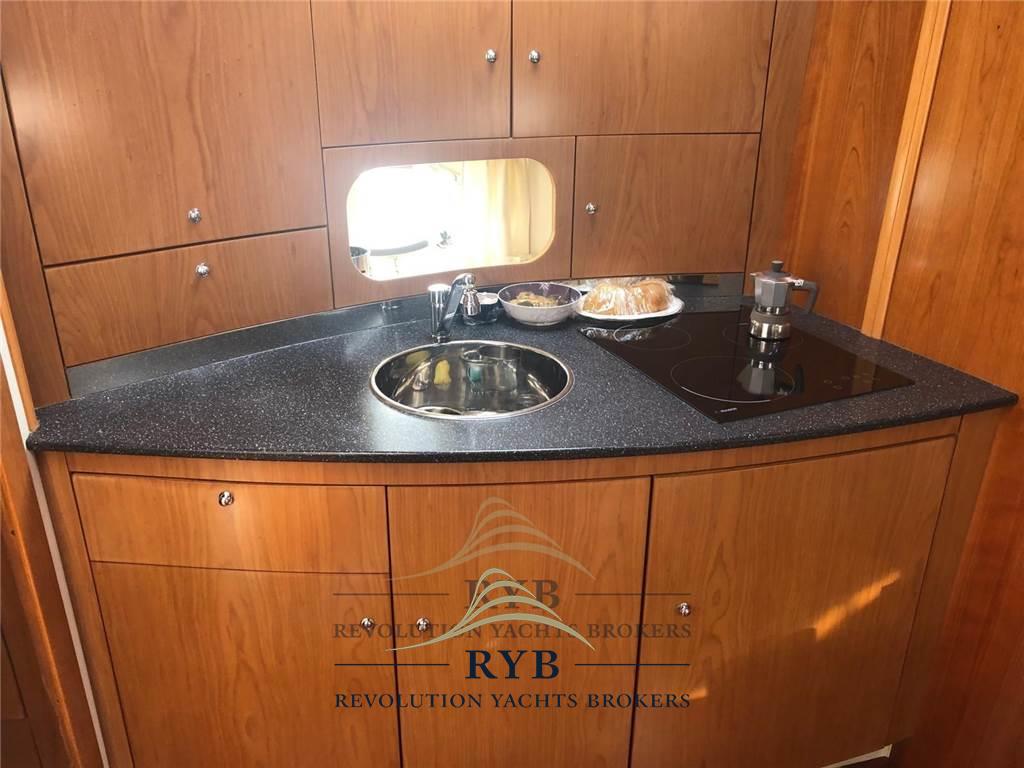 Notas internasNotas de la instrumentaciónBussola, Comando motori elettronico, Contamiglia, Ecoscandaglio, GPS, Pilota automatico, Radio VHF.Notas de armamentoAllestimento tecnico e di coperta:Ancora, Doccia esterna, Elica di prua - bow thruster, Flap idraulici (N°2), Lavandino nel Pozzetto, Luci di cortesia, Passerella, Piattaforma, Pompa di sentina automatica, Pompa di sentina manuale, Pozzetto Teak, Rollbar, Salpa Ancore Elettrico, Scaletta da bagno, Tavolo pozzetto, Tender (280 da 8cv), Tromba. Dotazioni domestiche di bordo: Pavimento interno in legno, Prese interne 220v, WC marino elettrico. Intrattenimento: Altoparlanti, Impianto TV, Stereo, TV. Cucina ed elettrodomestici: Cucina, Frigorifero esterno, Frigorifero interno, Microonde, Piastra elettrica. Tappezzerie: Cappottina, Cuscineria completa, Cuscineria di poppa, Cuscineria di prua, Cuscineria Pozzetto, Tendalino. |