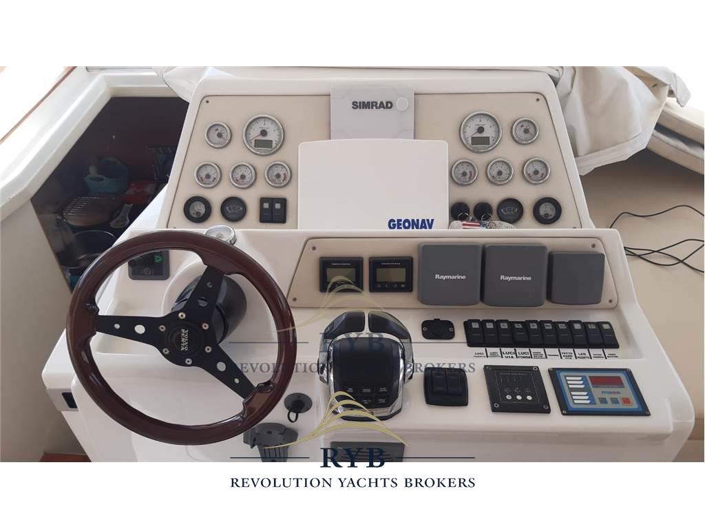 Notas internasNotas de la instrumentaciónBussola, Comando motori elettronico, Computer di bordo, Contamiglia, Ecoscandaglio (2023), GPS, Pilota automatico, Plotter con antenna GPS, Radio VHF, Sedile Copilota.Notas de armamentoAllestimento tecnico e di coperta:Allarme motore, Allarme sentina, Ancora, Camminamenti laterali in teak (2024), Colorazione speciale, Doccia esterna, Elica di prua - bow thruster, Flap idraulici, Hard top (DOPPIA APERTURA), Lavandino nel Pozzetto, Passerella (TELESCOPICA A SCOMPARSA), Piattaforma (TEAK), Pompa di sentina automatica, Pompa di sentina elettrica, Pozzetto Teak, Presa 220V banchina, Salpa Ancore Elettrico, Scaletta da bagno, Tavolo pozzetto. Dotazioni domestiche di bordo: Aria condizionata, Clima reversibile, Impianto acque nere, Pavimento interno in legno, Prese interne 12v, Prese interne 220v, Serbatoio Acque Nere. Intrattenimento: Altoparlanti, Stereo. Cucina ed elettrodomestici: Cucina, Fornello (POZZETTO), Frigorifero esterno, Frigorifero interno, Piastra in vetroceramica. Tappezzerie: Cappottina, Copripozzetto, Copriscafo, Cuscineria completa, Cuscineria di poppa, Cuscineria di prua, Cuscineria Pozzetto, Tendalino (INVERNALE 2024 + ESTIVO). |
