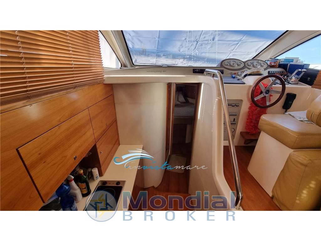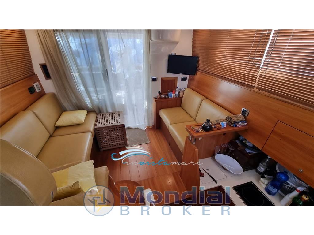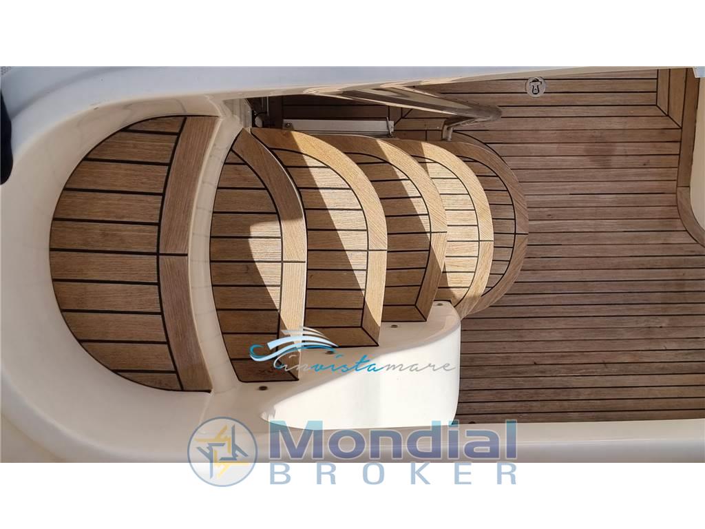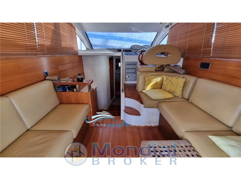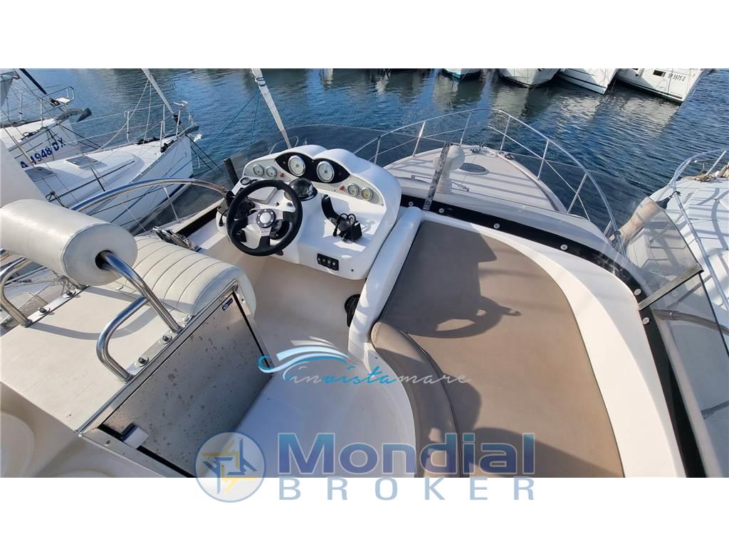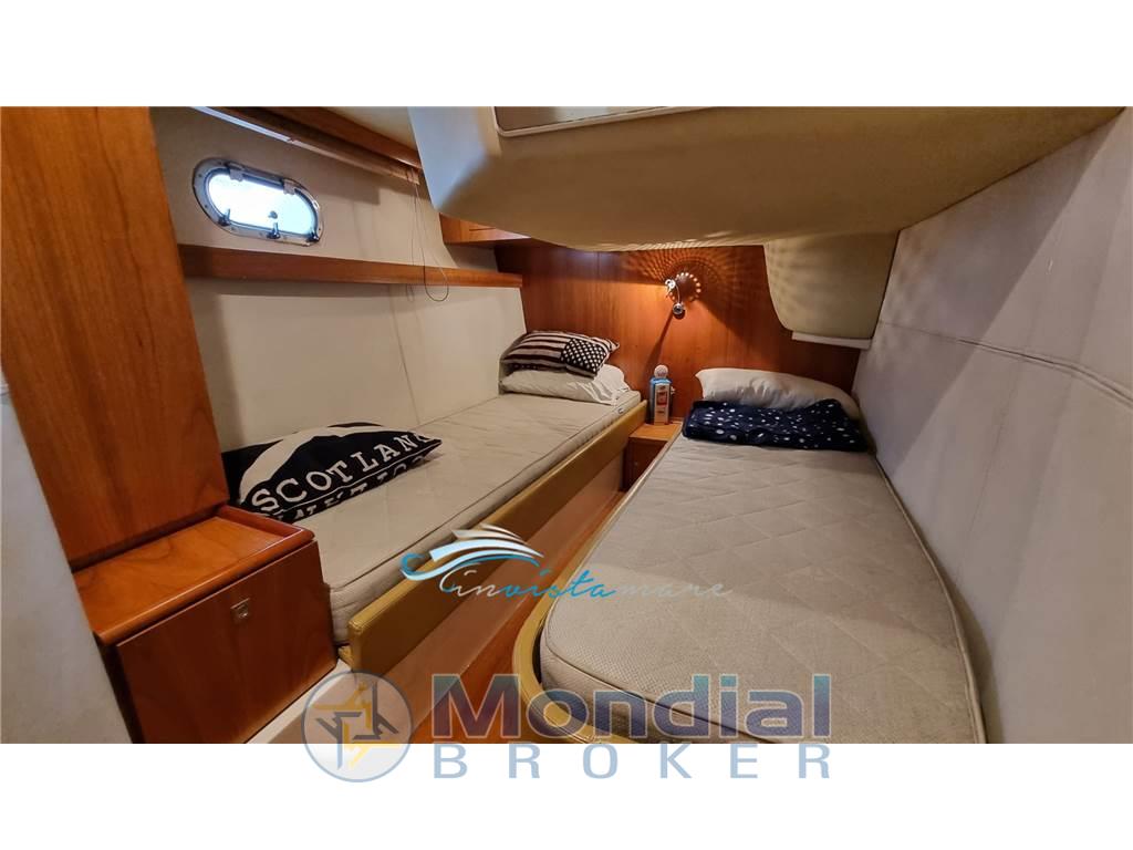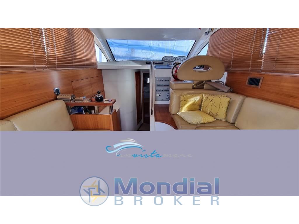 Notas internasNotas de la instrumentaciónAllarme motore, Batterie, Camminamenti laterali in teak (da gommare), Caricabatterie, Comando motori elettronico, Doccia esterna, Ecoscandaglio, Elica di prua - bow thruster, Faro orientabile, Flap idraulici, GPS, Luci di cortesia, Luci subacquee, Passerella, Pilota automatico, Radio VHF, Salpa Ancore Elettrico, Scaletta da bagno, Tavolo pozzettoNotas de armamentoBoiler, Copripozzetto, Cucina, Cuscineria di poppa, Cuscineria di prua, Cuscineria fly, Dotazioni di sicurezza entro 50 miglia, Fornello (2 piastre elettriche), Frigorifero esterno, Frigorifero interno, Ghiacciaia, Giubbetti di salvataggio, Portacanne, Radio AM/FM, Telo copriconsolle, Telo coprisedile, TV |