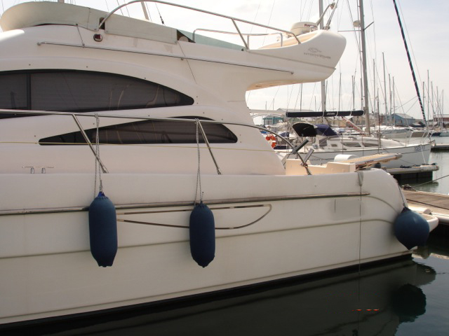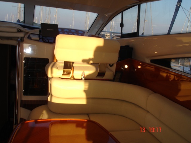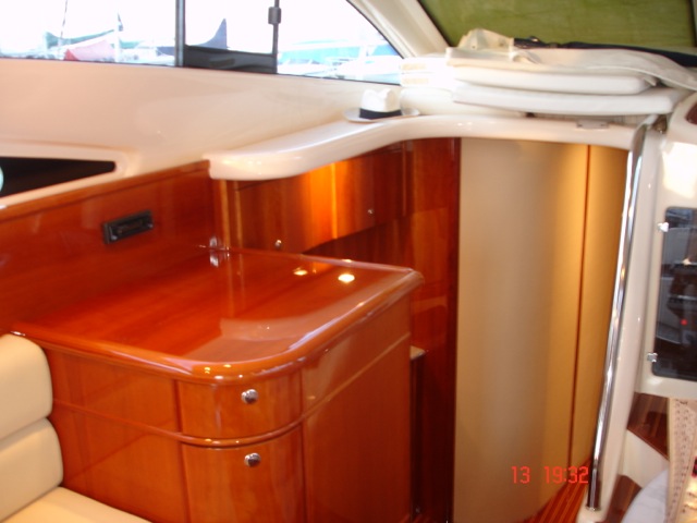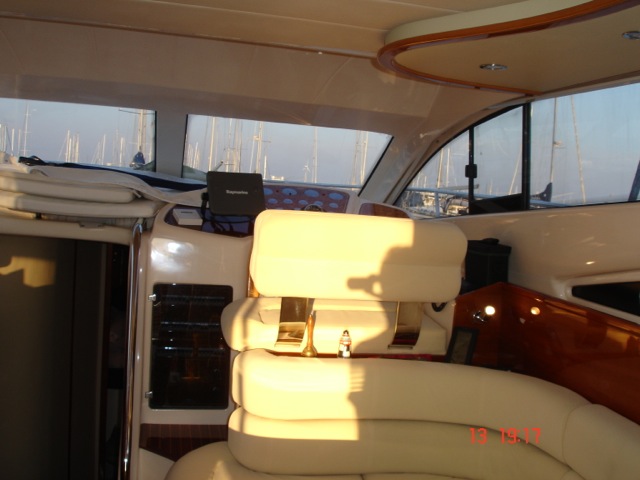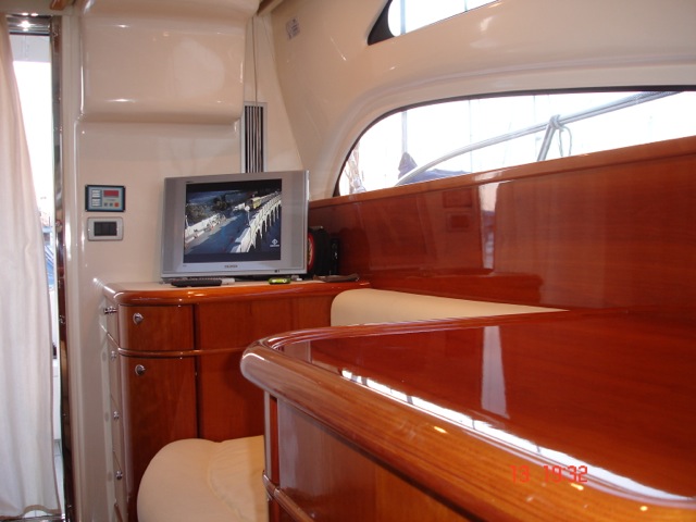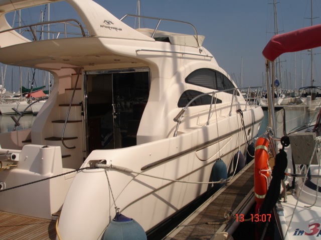 Notas internasNotas de la instrumentación2 Gps brújula trazador gráfico con cartografÃa, piloto automático, Vhf con antena externa, radar, sonda, registro, velocÃmetro, ángulo del timón, alerones electro-hidráulicos, solapas de instrumentación completa de motores de visor controles motores electrónicos toda la electrónica en el cabrestante hidráulico de electro mosca repetidas con control remoto Tv con antena terrestre Lcd Tv en radio de salón sistema estéreo de alta fidelidadNotas de armamentoGenerador de 5 kw, aire acondicionado, termostatos de calefacción reversible Pasarela hidráulica ambiental con cabina remota en plataforma de baño de teca en el baño del piso de escalera interior de madera teca, caliente y ducha de agua frÃa en el piso interior de cabina con arco de fugas de arce caoba empuje amortiguadores completo al aire libre en la terraza de excelentes condiciones en el arco externa toldos pérdida del tanque y molinete eléctrico de cabrestante Alcantara gris doble equipo de seguridad del refrigerador (a verificar) ancla w. toldo de cadena mosca tuerca todo en excelente estado |