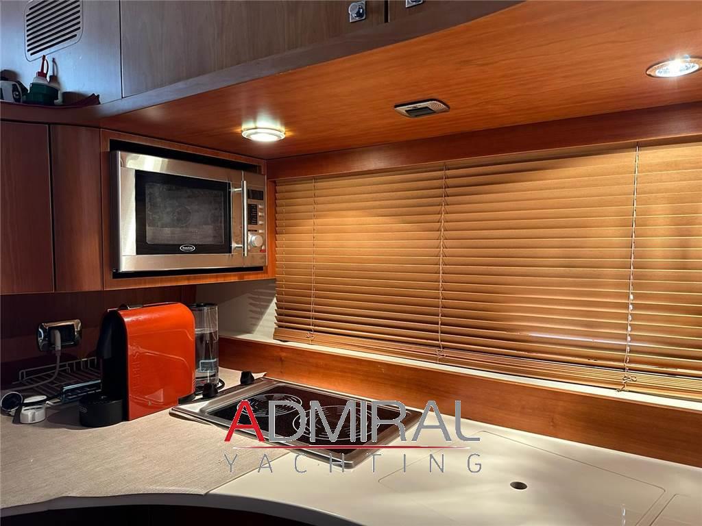 Notas internasMatrimoniale a prua con bagno privato, doppia con letti in piano con bagno, dinette trasformabile (cuscineria 2022), cucina completa con piano cottura a induzione, pavimento in legno Notas de la instrumentaciónBow thruster, Ecoscandaglio, Flap idraulici, GPS, Manette elettroniche, Passerella idraulica, Pilota automatico, PlotterNotas de armamentoA/C, Boiler, Computer domotica, Cucina, Cuscineria completa, Impianto acque grigie e nere, Impianto TV, Inverter, Microonde, Oscuranti (2023), Piattaforma e pozzetto in Teak, Prese interne 12/220v, Teli copripozzetto (2023), Telo copertura fly, Telo copriconsolle, Riscaldamento, Zattera |