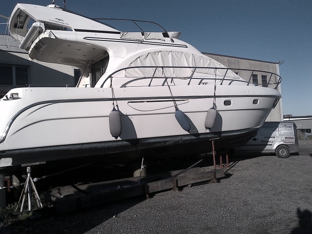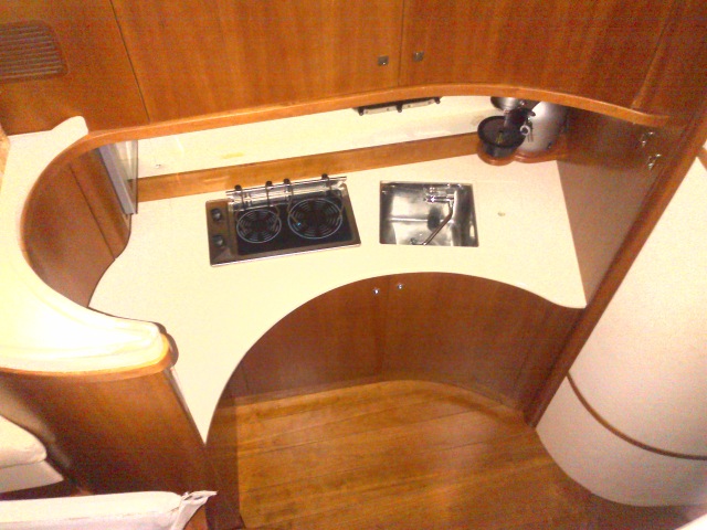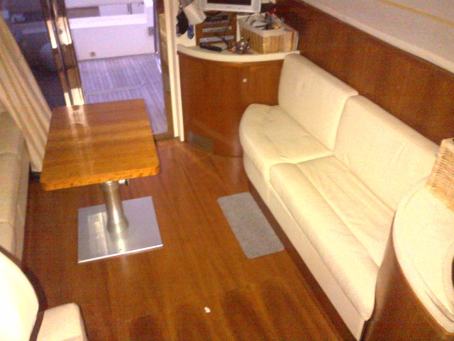 Notas de armamento6 kw Onan generador, aire acondicionado F/c con termostato en cada habitación Passerella idraulica, Helice de proa deformación Tornos en cabina alargada plataforma en teca teca Cockpit lado pasillos interiores muebles de teca satén cereza madera interior piso cuero cojines de sofá completa externa toldos completa externo fábrica de hielo lavadora doble barco visita otra vez como nuevo