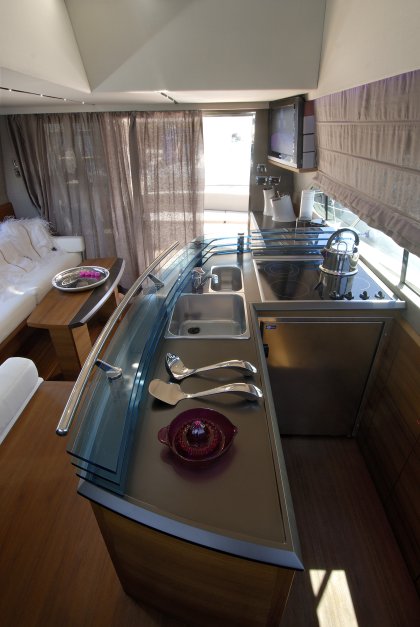 Notas de armamentocasco de color gris, accesorios: aire acondicionado, además del grupo mayor, pasarela retráctil, sistema de agua negro, cabrestante de popa, la serie completa de instrumentación de radar Raymarine y 48 mg, el paso de teca + guÃa, tomar el sol y volar hacia delante, un sofá en el salón área de la piel zona de carga en popa, barbacoa en la marcha, sofá deslizamiento biplano de cabina con roll-bar, nevera en el flybridge, mesa de la sala eléctrica, efecto de luz suave en la noche, el sistema de iluminación exterior de cortesÃa, suelo de teca en el baño y la sala de estar, los controles de acero electrónico del motor. subir a bordo Intermare 50 a través de una pasarela retráctil con acceso a lado: uno en popa, es recibido por una gran bañera de teca: único es la capacidad de convertir el sofá en la cubierta de popa caer de nuevo hacia el puente o pozzetto.li a los muebles, decorada con telas de calidad y la teca, continuará desde el interior de la cabina del piloto para crear la sensación de estar en un único entorno. las ventanas laterales (4,80 m de ancho) se puede abrir eléctricamente, que impregna los colores con el fin de dar la apariencia de un proceso abierto. inmediatamente a la izquierda se coloca un pedazo de muebles usados ​​como un piano bar y está dedicado a la relajación.