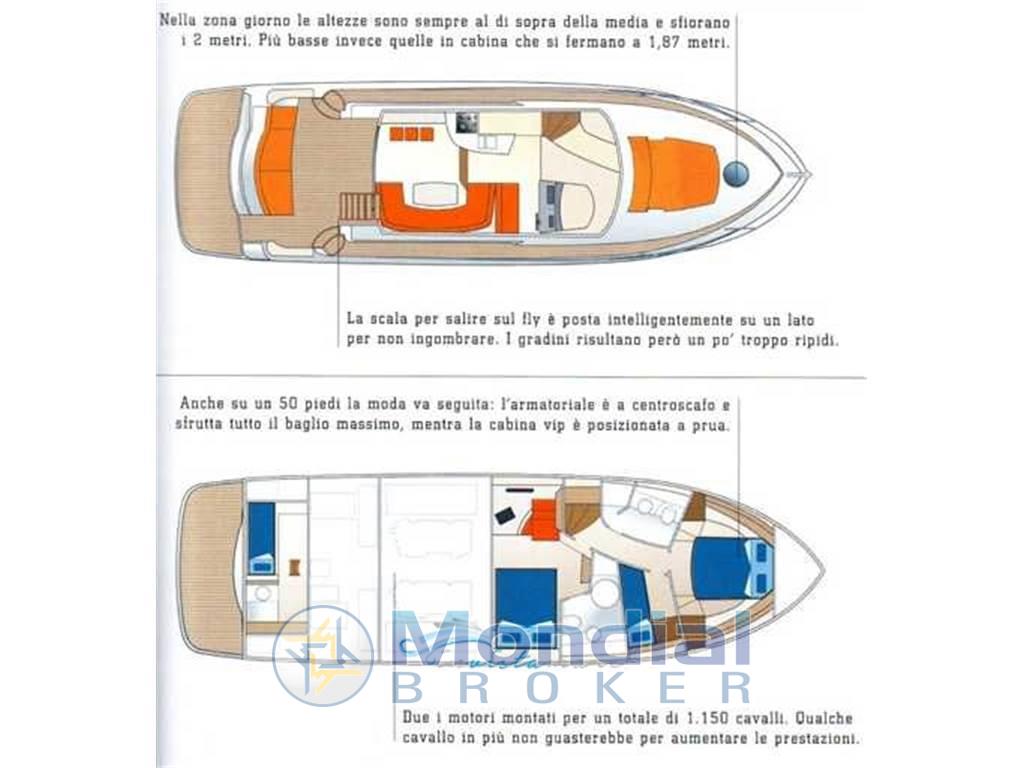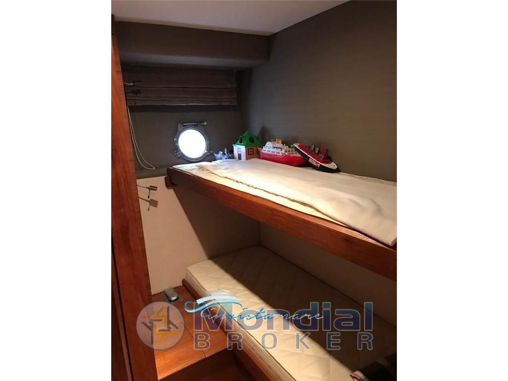 Notas de armamentoAria condizionata, Bimini, Boiler, Cucina (a induzione), Cuscineria completa (in pelle), Cuscineria di prua, Cuscineria fly, Dotazioni di sicurezza entro 50 miglia, 4 Fornello, Frigorifero esterno, Frigorifero interno, Ghiacciaia, ICE Maker, Impianto acque nere, Impianto TV, Inverter, Microonde, Prese interne 12v, Prese interne 220v, Stereo, 2 Telecamera, 3 Teli copri finestra (per vetro anteriore e laterali), Telo Copertura Fly, Tendalino (chiusura pozzetto), 3 TV, Zattera di salvataggio (scadenza 2023)