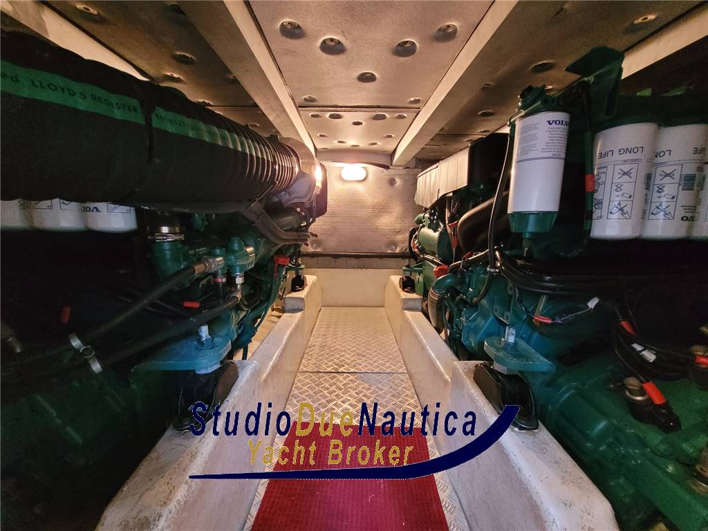 Notas internasCabina armatoriale climatizzata caldo freddo a centro barca con letto matrimoniale e bagno privato e box doccia Cabina VIP climatizzata caldo freddo a prua con letto matrimoniale a penisola Cabina ospiti con letti a castello, Cucina completa di lavello, frigo, fuochi vetro ceramica. Salone climatizzato caldo freddo con tavolo da pranzo elettrico e grande divano in pelle Pavimento interno in legno Notas de la instrumentaciónGPS RaymarineEcoscandaglio Raymarine Pilota automatico Raymarine Angolo di barra Comando motori elettronico Elica di poppa - stern thruster Elica di prua - bow thruster Flaps idraulici Indicatori flaps VHF Notas de armamentoBiminiCuscineria completa Cuscineria di prua Cuscineria fly Cuscineria Pozzetto Telo Copertura Fly Lavandino nel Pozzetto e sul fly Porta ingresso Pozzetto e palncetta in Teak Tavolo fly 2 Winch tonneggio di poppa Salpancora Elettrico Presa acqua banchina Doccia esterna Piattaforma in teak Scaletta da bagno Presa 220V da banchina Caricabatterie Inverter Prese interne 12v Prese interne 220v Luci di cortesia Altoparlanti Radio AM/FM Stereo Impianto TV TV Aria condizionata Clima reversibile Autoclave Boiler per l'acqua calda Passerella idraulica Generatore Onan 9kw |